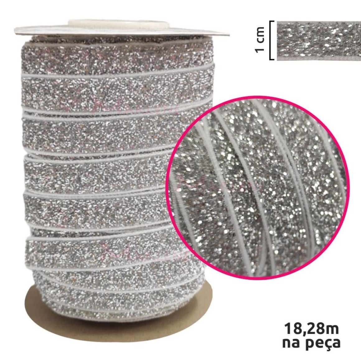 Fita metalizada lurex de 1cm com 18,28m na peça