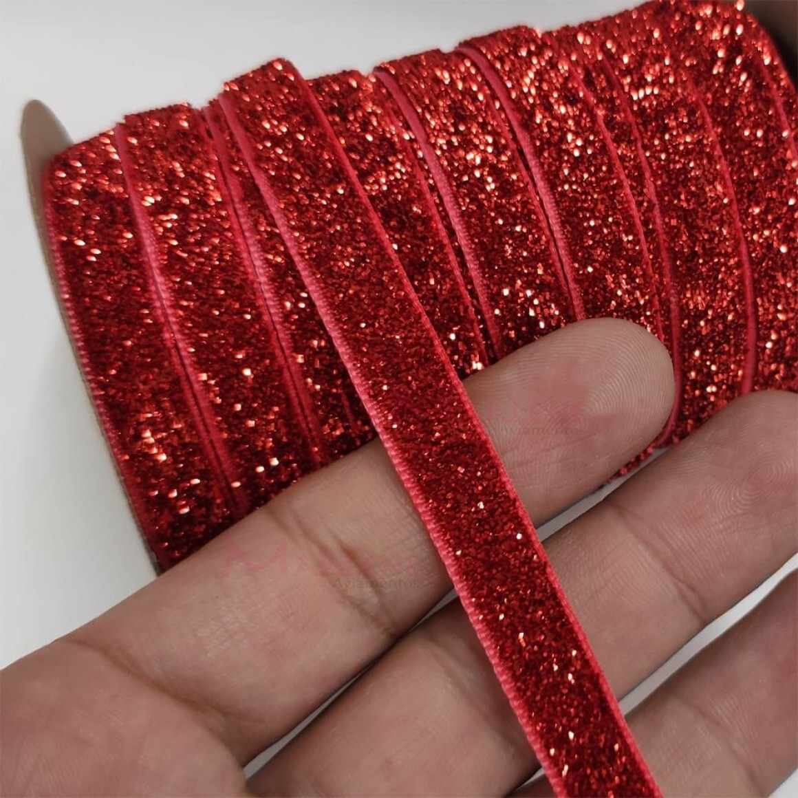 2. Fita metalizada lurex de 1cm com 18,28m na peça