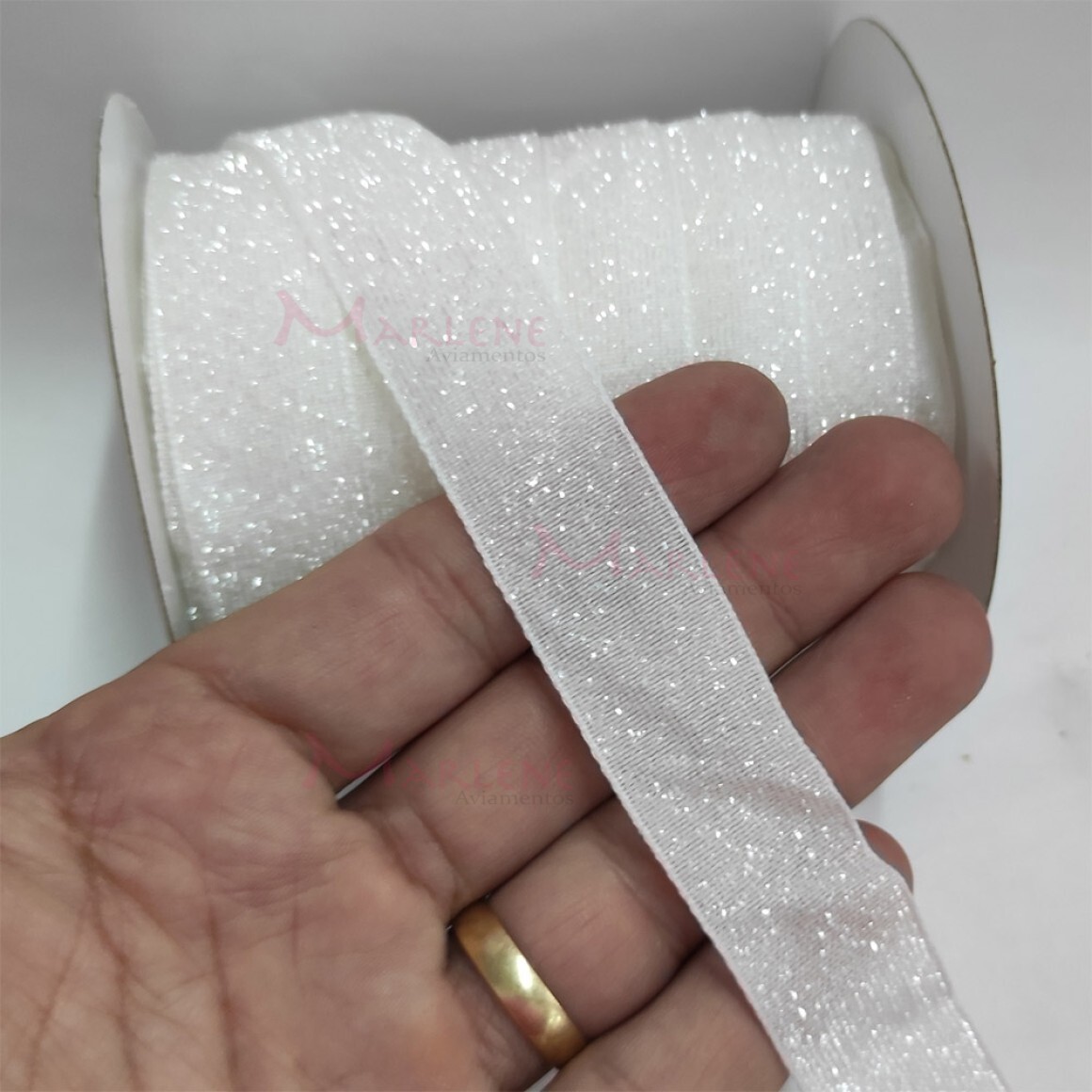 2. Fita metalizada lurex de 2cm com 18,28m na peça