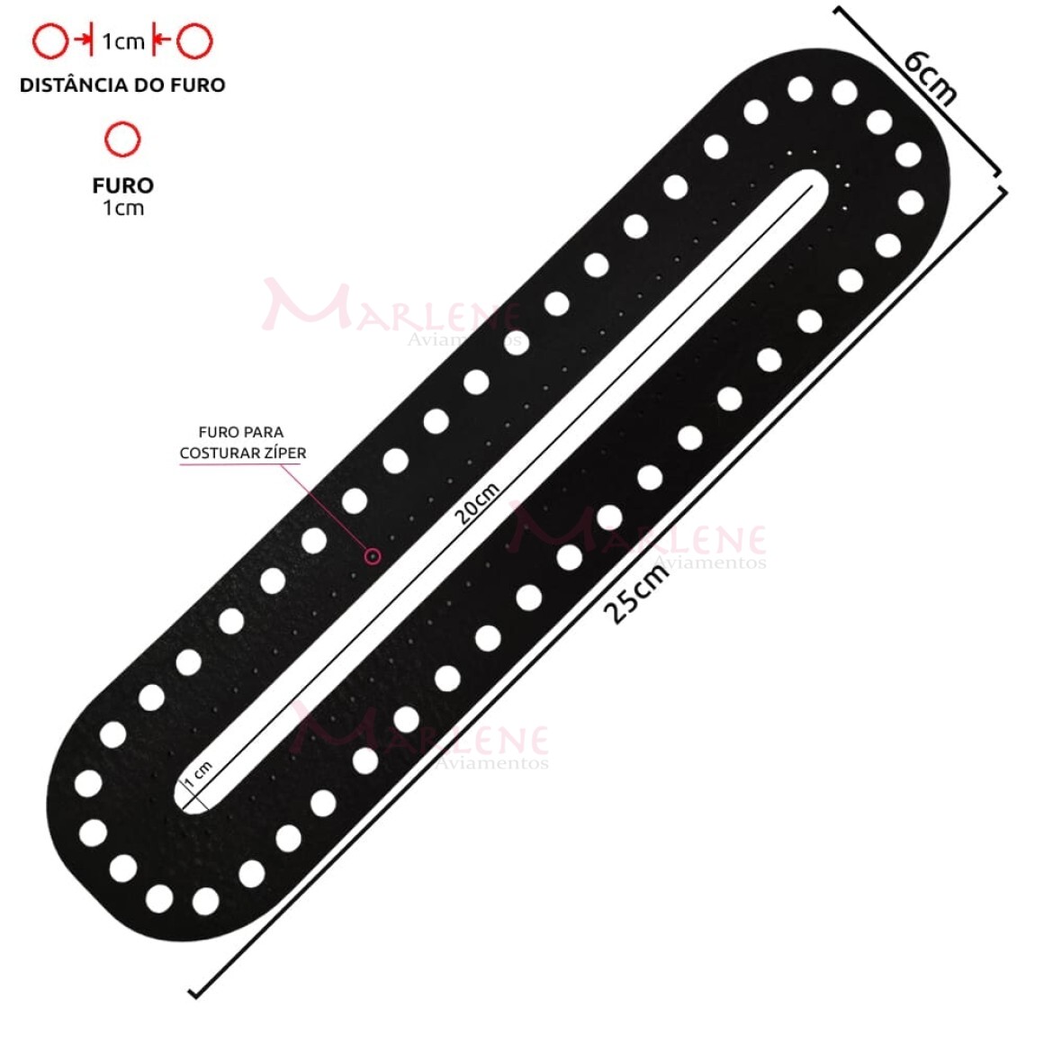 Uso: O acessório de couro sintético para zíper , te proporciona muito mais agilidade e beleza para finalizar o fechamento de suas bolsas, pois, já vem com os furos prontos para colocar o zíper e depois só costurar na sua bolsa de crochê, não necessitando perder tempo com furos manuais. Super combina com outros acessórios como fundo de bolsa, fechos de corino ou metal, além de portas alças.