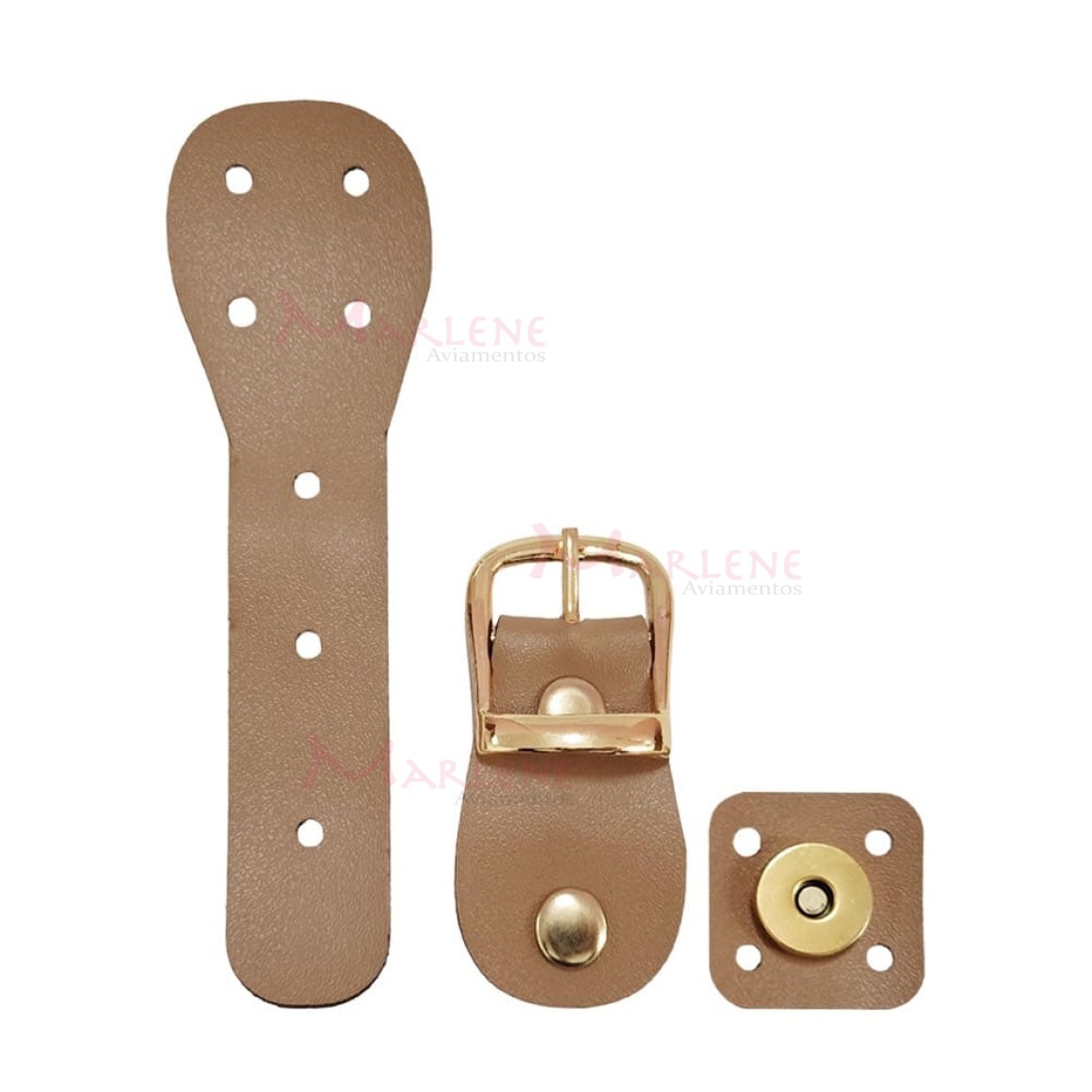 Uso: Fecho usado em bolsas em bolsa de crochê e tricô, entre outros adereços com fecho. Feito em material de couro sintético, botão ímã 14mm rebites nº3 e fivela metal, deixando o seu trabalho elegante. Esse modelo não precisa ser rebitado, é simplesmente costurado.