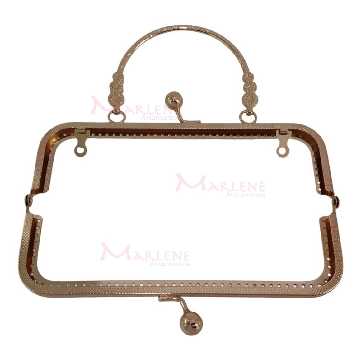 Detalhes: Armação fecho da vovó retangular 20cm com alça e furos HYTS-2