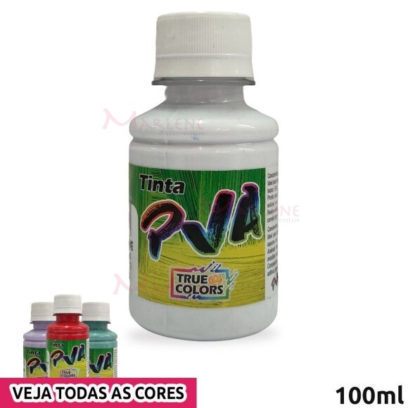 Uso: A tinta PVA fosca True Colors é ideal para pintura sobre madeira, MDF, gesso, cerâmica, EPS, vidro, PET etc. Possui alto poder de cobertura e aderência, podendo ser aplicada sobre uma superfície crua, pintada ou preparada com Base para Artesanato, Massa Modelagem ou Primer True Colors.