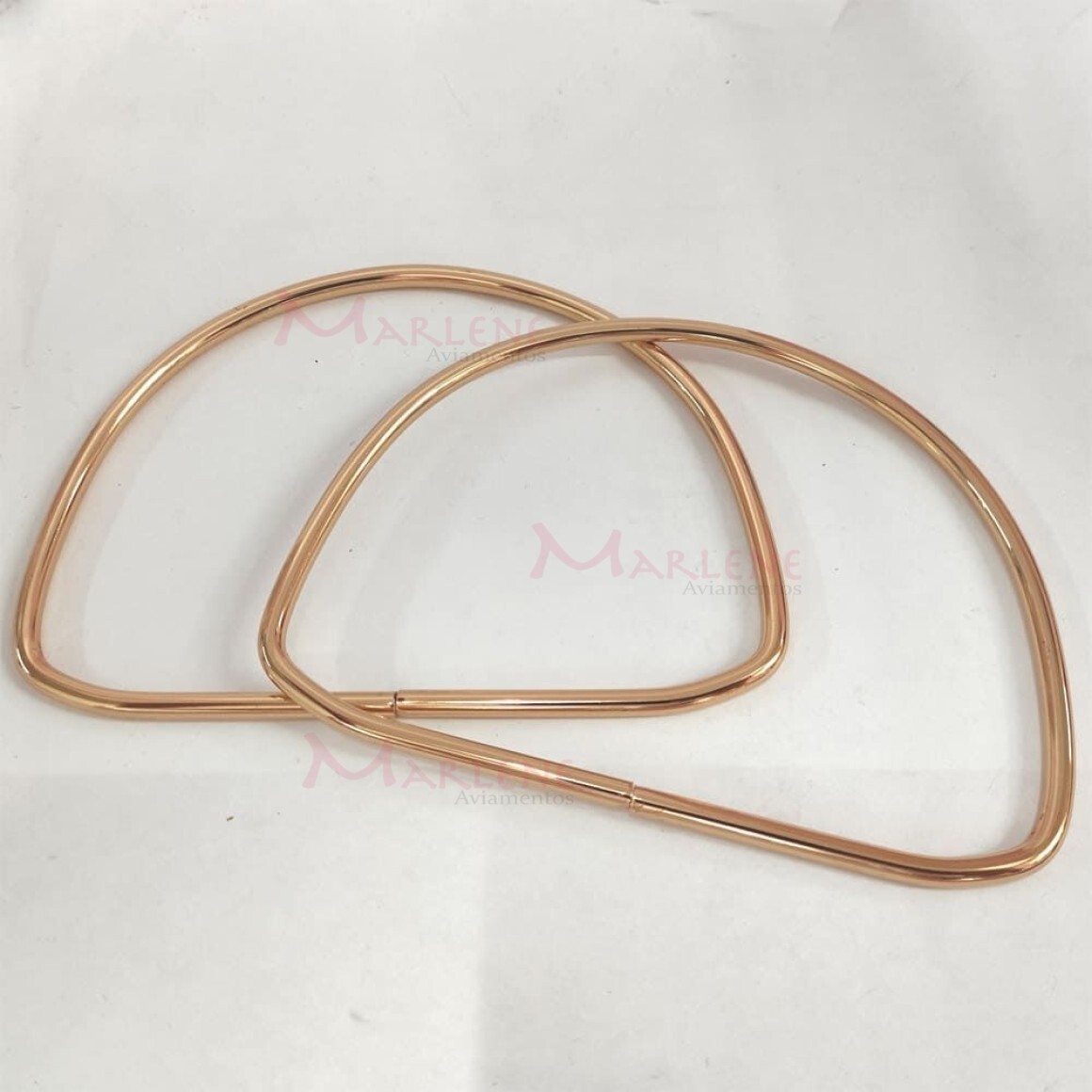 Uso: Alça para bolsa em metal modelo meia argola, utilizada em bolsas de crochê, como alça de mão. Material resistente e elegante para garantir um diferencial para suas bolsa. Alça com abertura para que você encaixe os dois lados na bolsa.