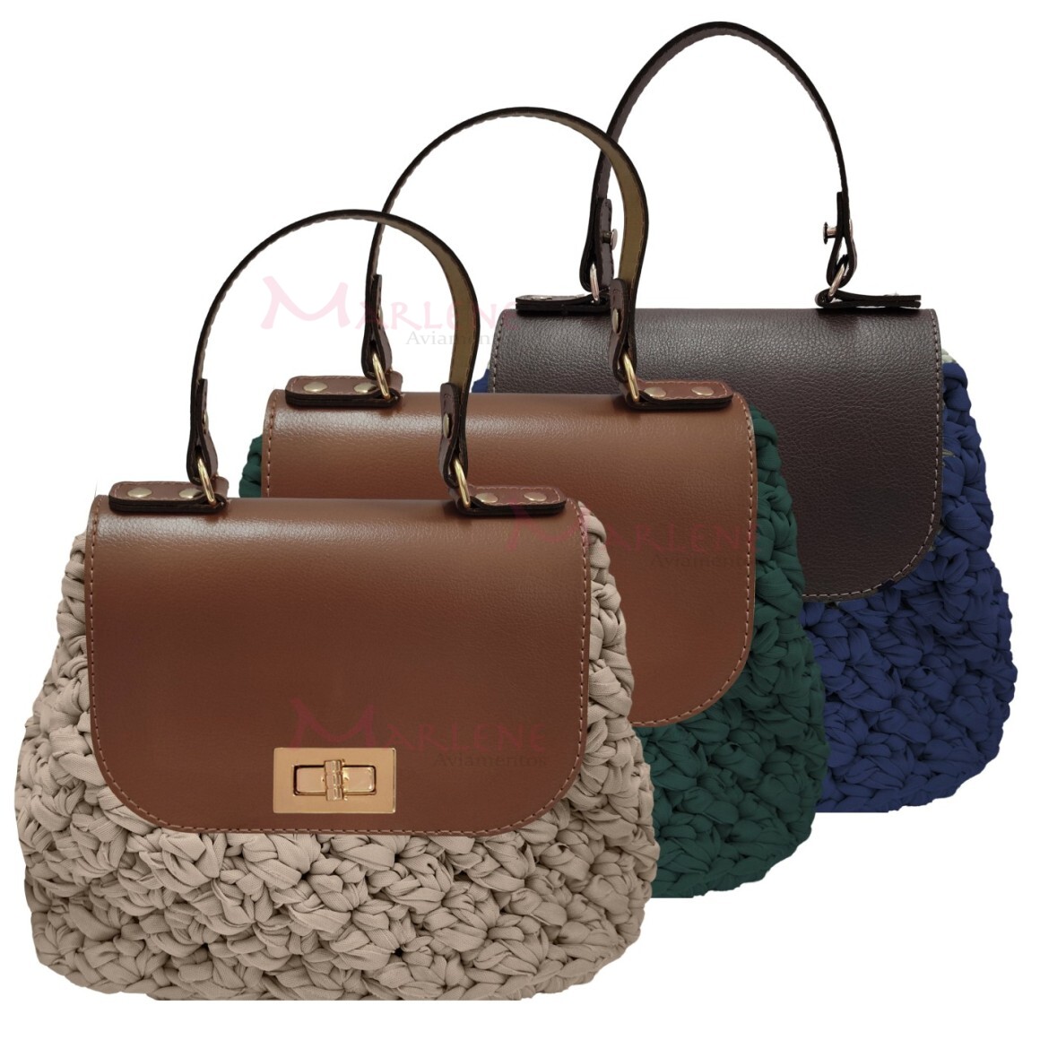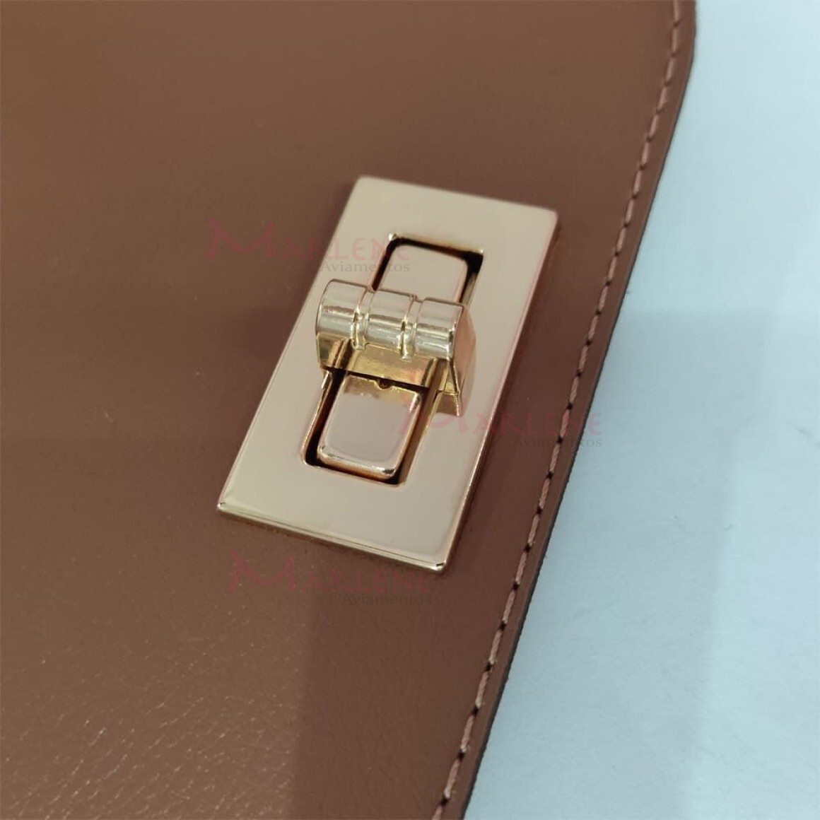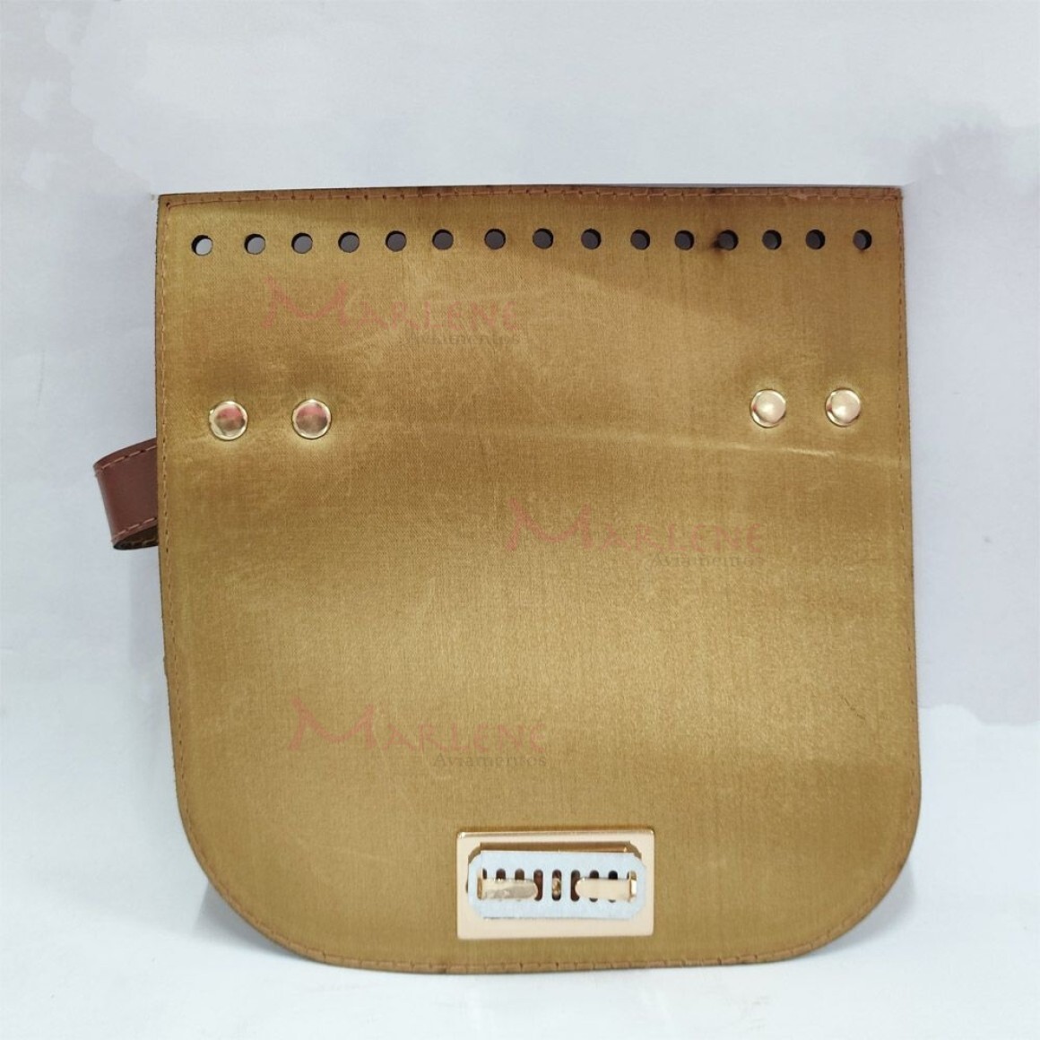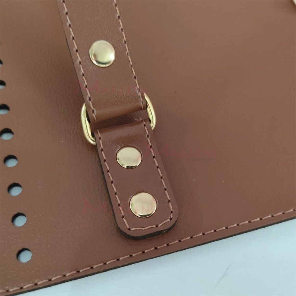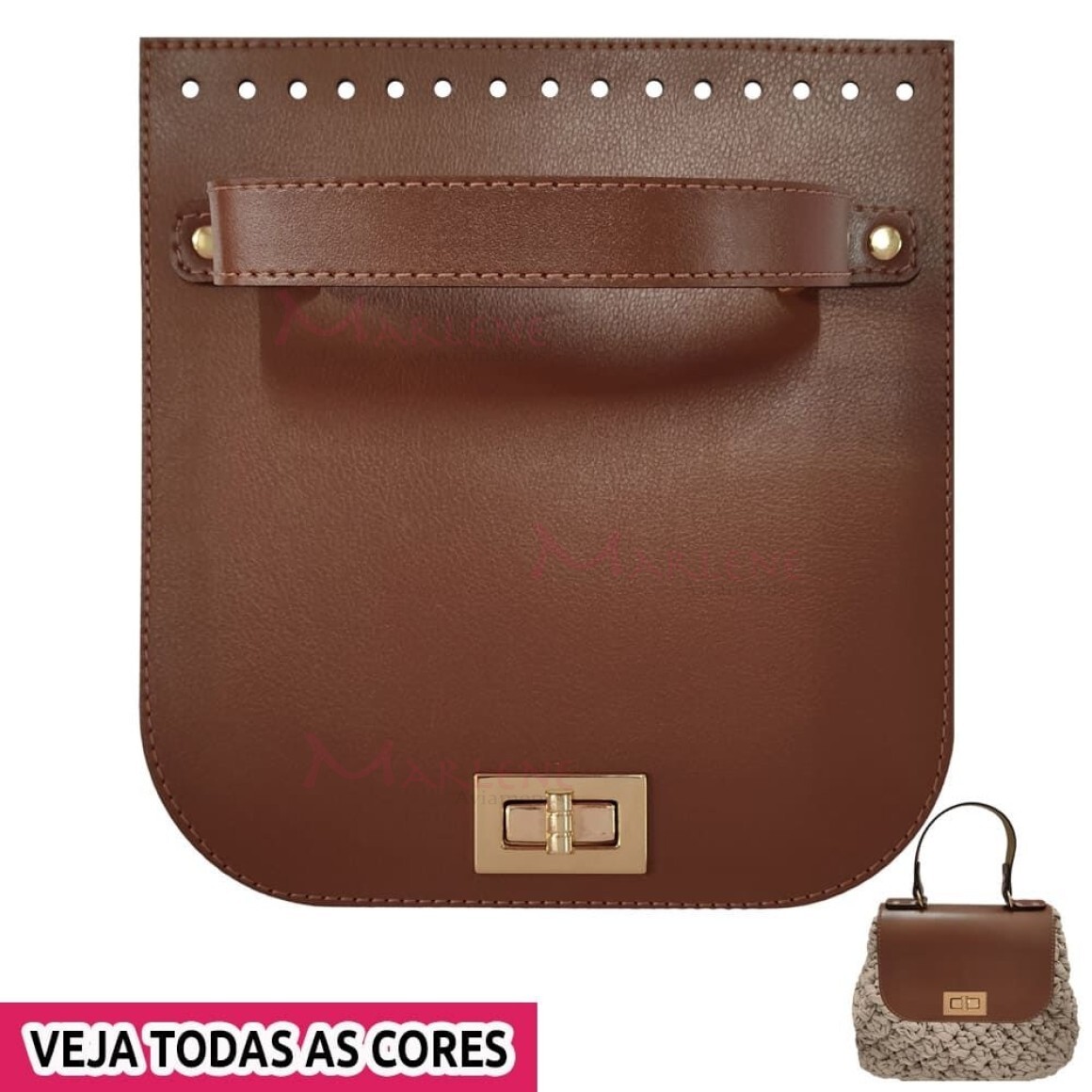 - Tampa com alça em couro sintético 21x21cm costurada e forrada com fecho de metal para bolsa de crochê e tricô