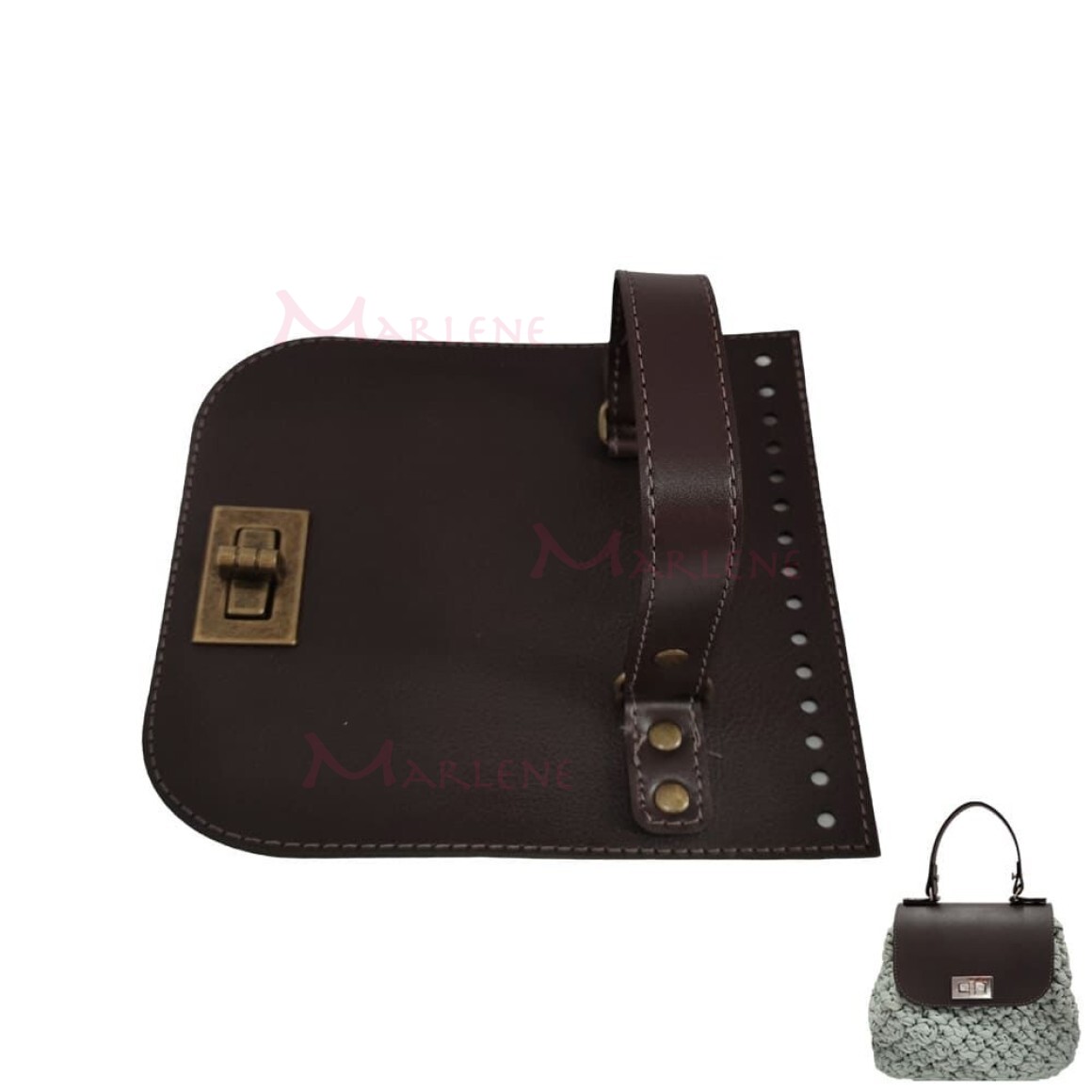- Tampa com alça em couro sintético 21x21cm costurada e forrada com fecho de metal para bolsa de crochê e tricô