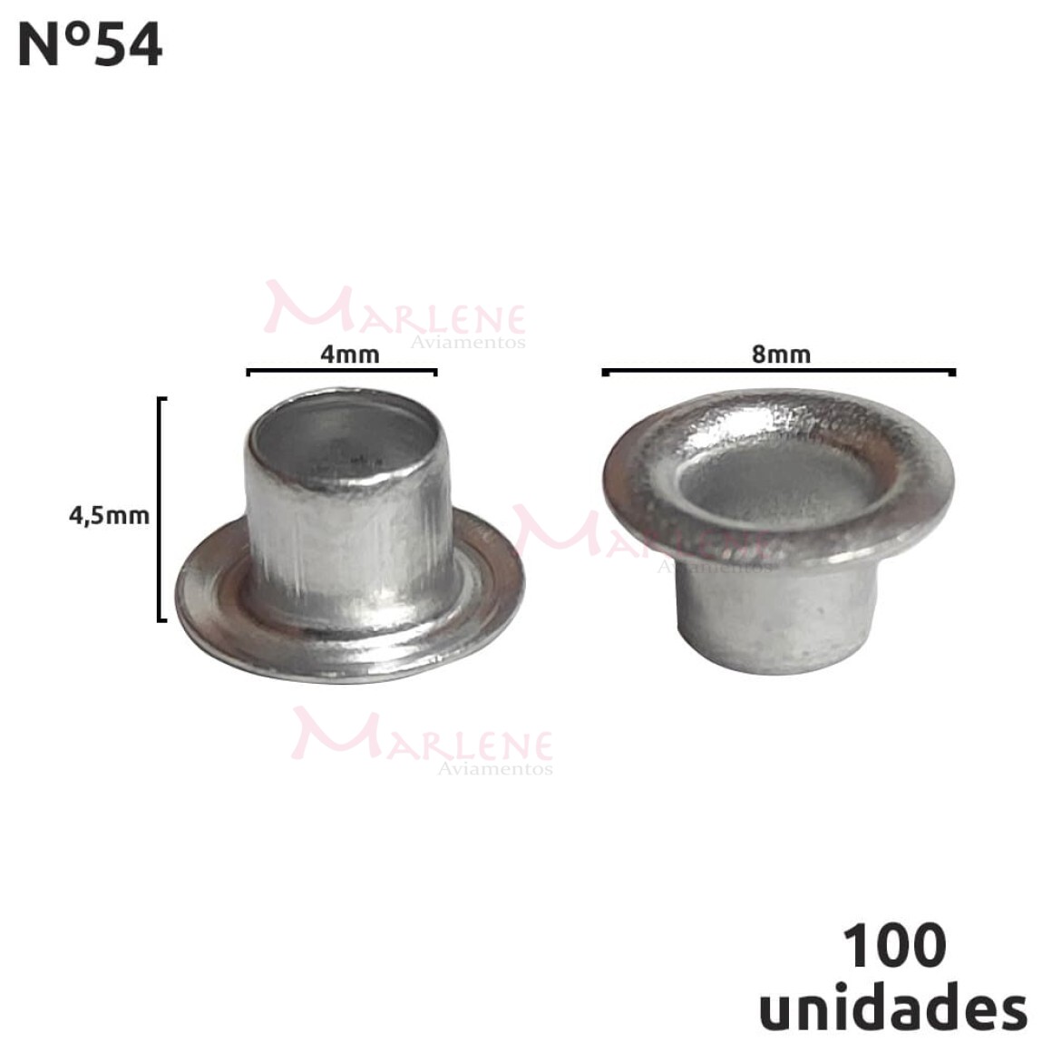 Ilhós 54 alumínio Baxmann com 100 unidades