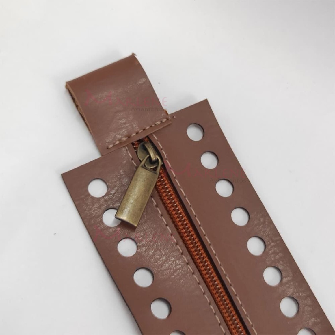 Fecho em couro sintético com zíper (Fecho Teresa) de 25cm para bolsa de crochê