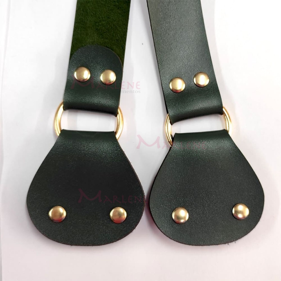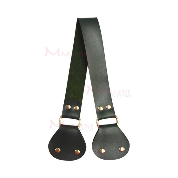 Uso: Alça de bolsa para ombro em couro sintético, fechamento com rebites duplos e argola de ferro. Utilizada para bolsa de crochê, tricô, entre outros. Deixa sua bolsa bonita e elegante.
