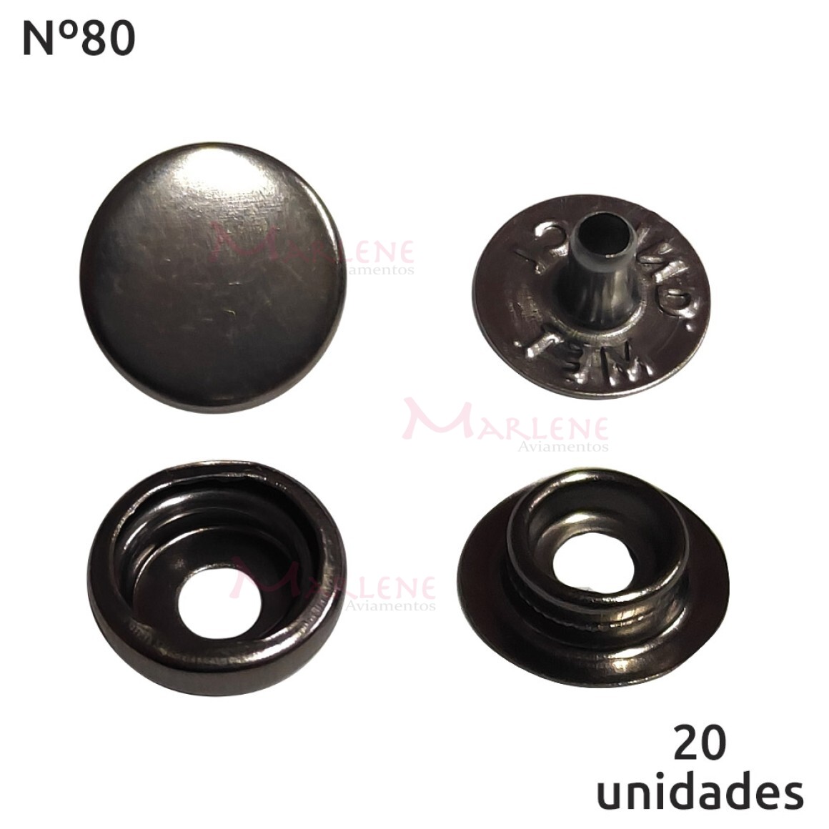 Detalhes: Botão de pressão nº80 (/80) com 20 unidades Baxmann.