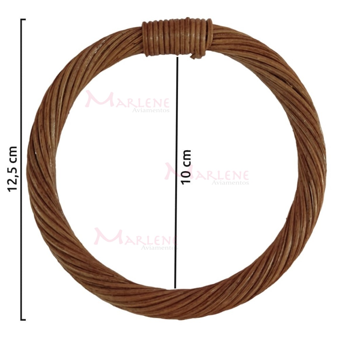 Detalhes: Alça rattan para bolsa redonda 12,5 cm trançada com 1 par