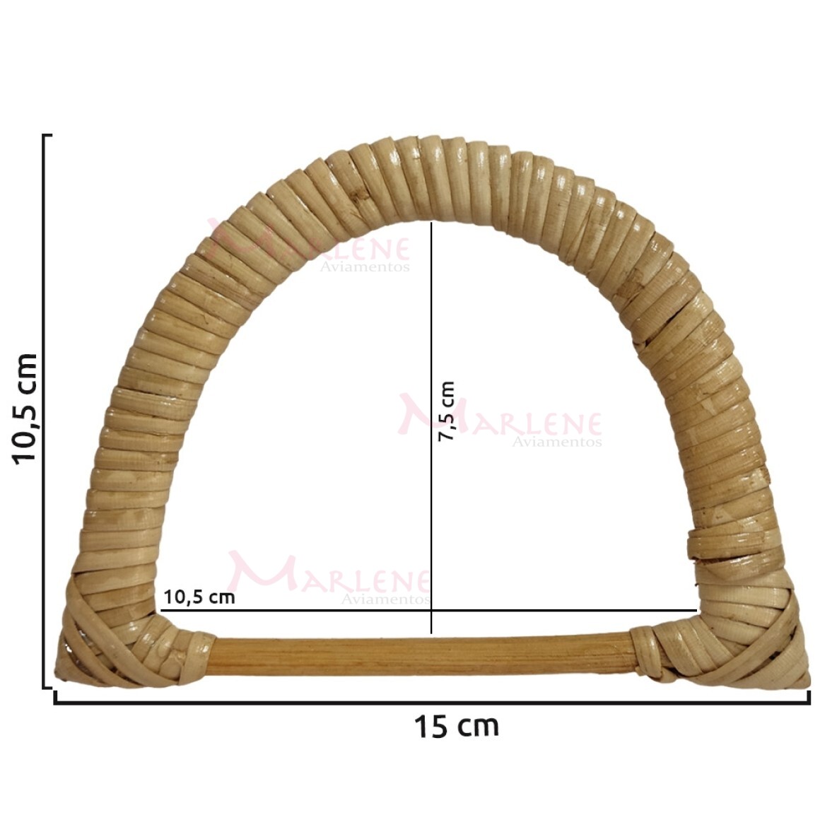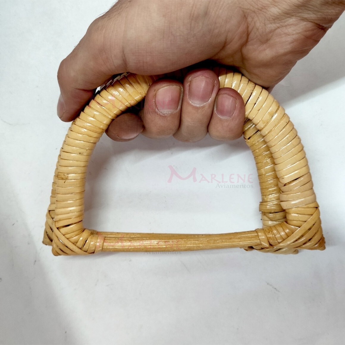 2. Alça rattan para bolsa 15x10,5 cm meia argola com 1 par