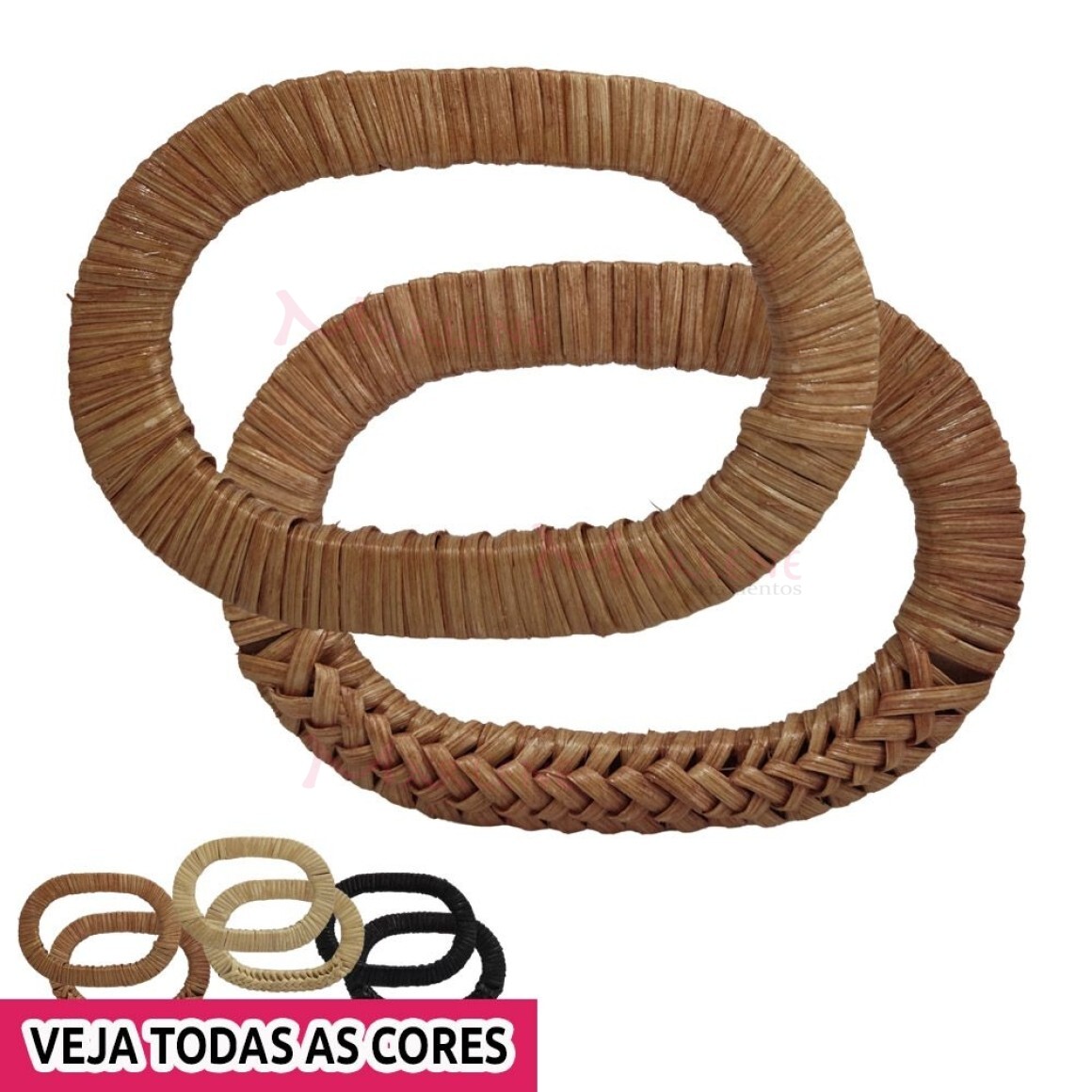 2. Alça rattan para bolsa oval 13,5x9,5 cm trançada com 1 par