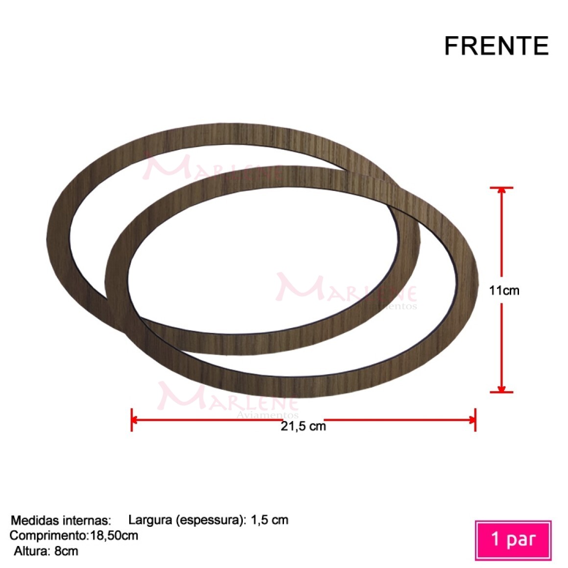2. Alça mdf oval "M"(21,5x11cm) forrada em cetim e mdf laminado 1 par