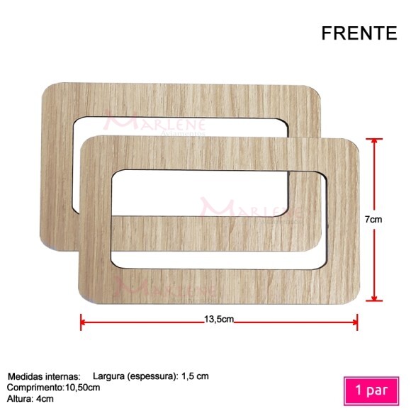2. Alça mdf retangular "P"(13,5x7cm) forrada em cetim e mdf laminado 1 par