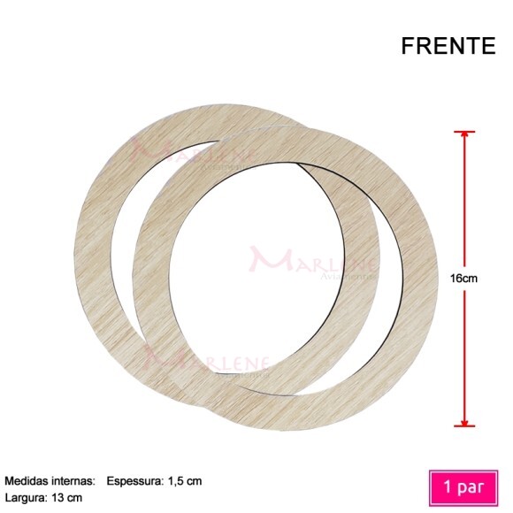 Detalhes: Alça mdf redonda "M" 16cm forrada em cetim e mdf laminado 1 par