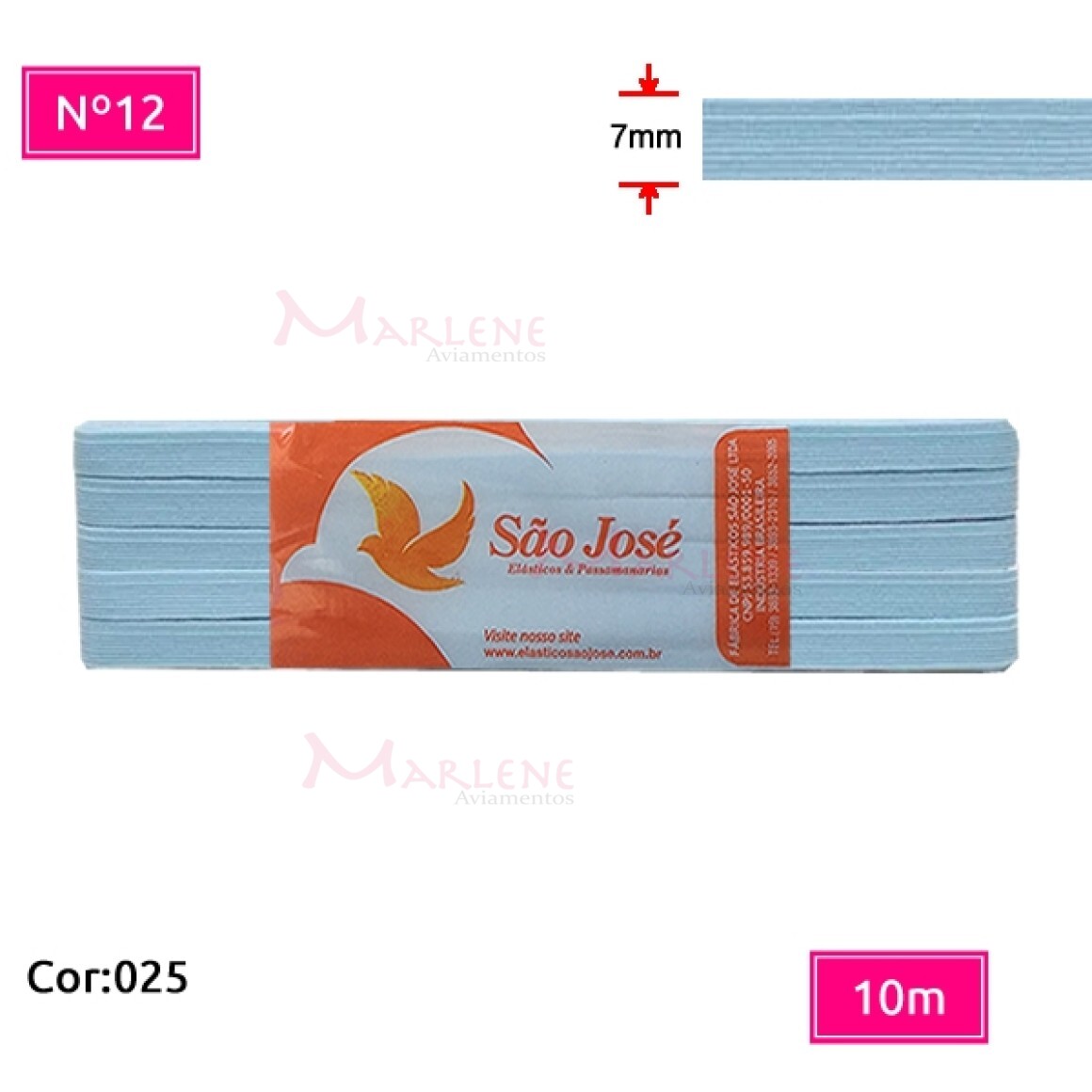 Detalhes: Elástico São José nº12 7mm com 10m colorido