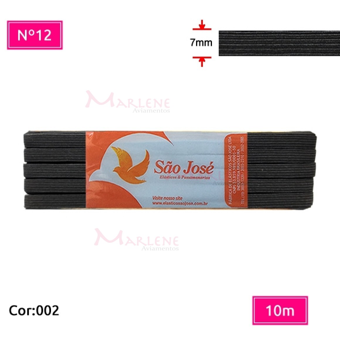 Detalhes: Elástico São José nº12 7mm com 10m colorido