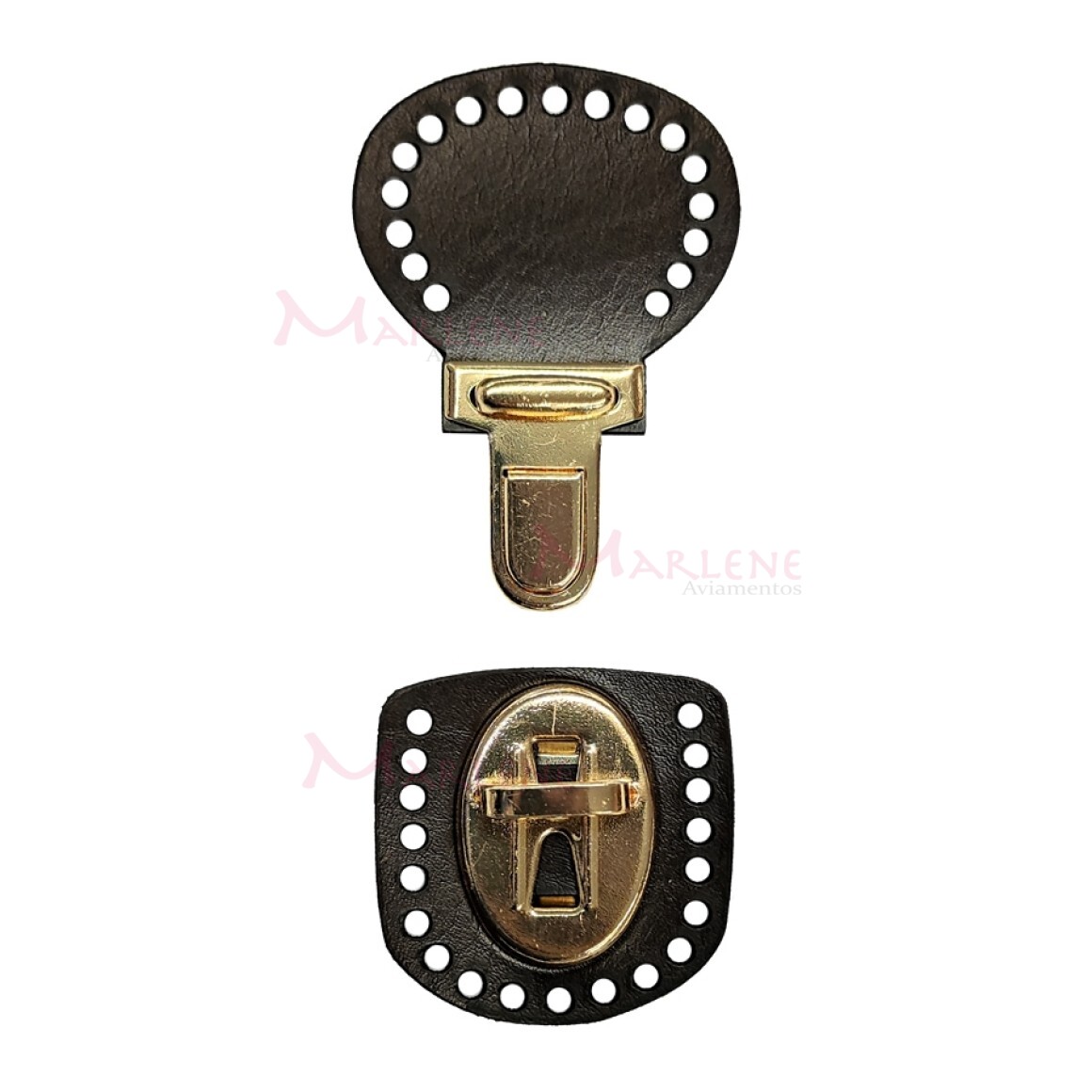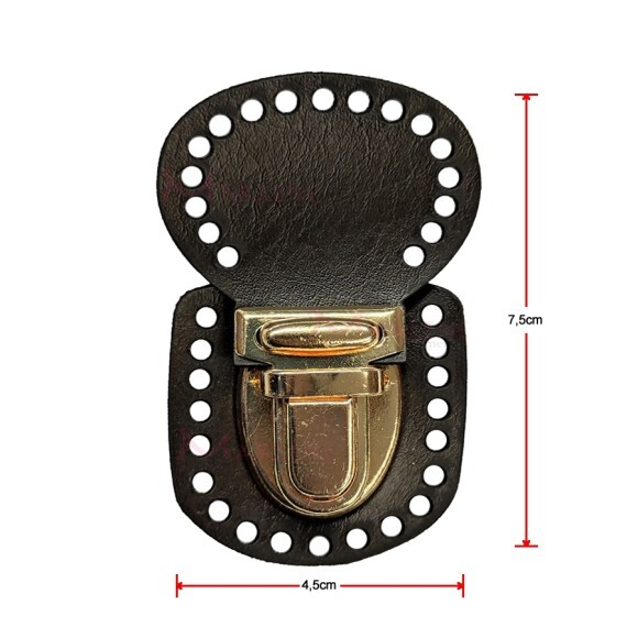 Fecho para bolsa crochê e tricô em metal ouro e corino