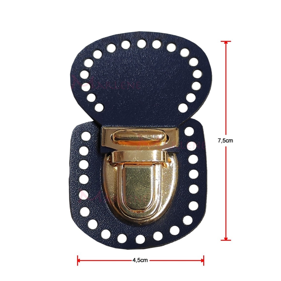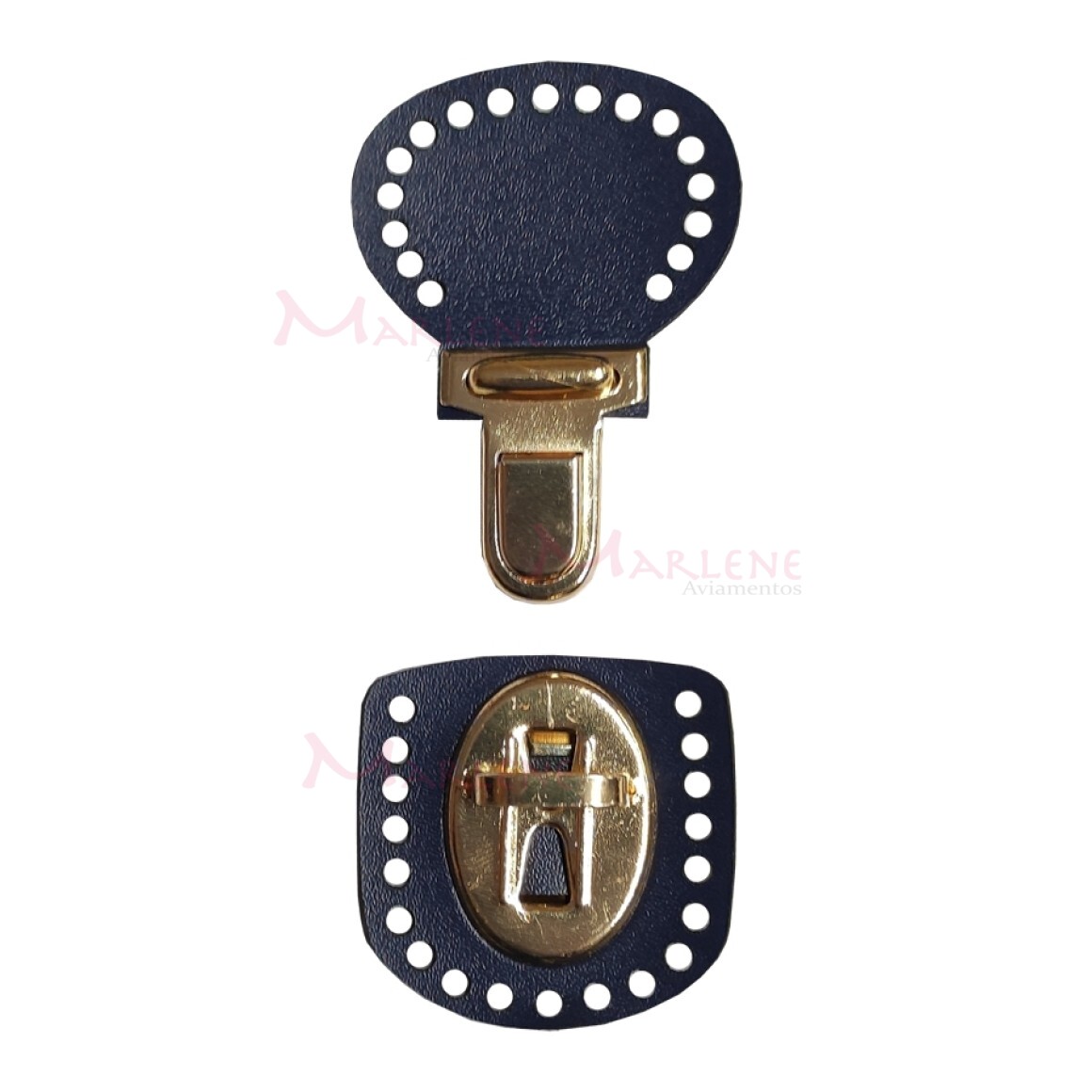 Fecho para bolsa crochê e tricô em metal ouro e corino