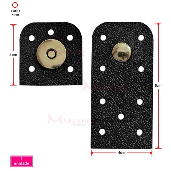 Detalhes: Fecho para bolsa com botão de ímã 18 canto arrendondado corino