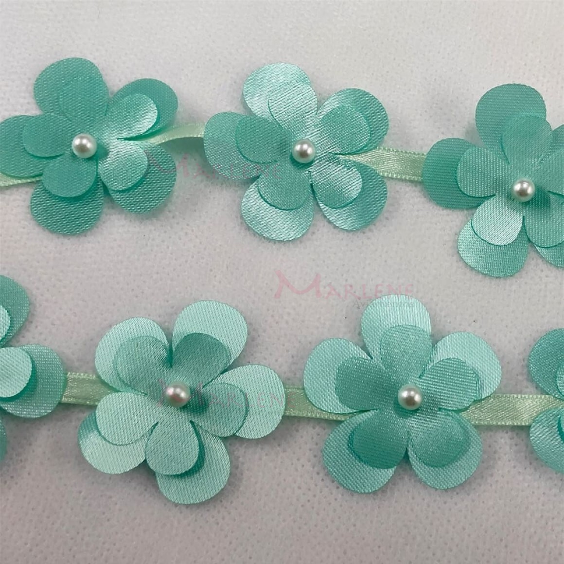 Características: Flor de cetim com pérola usada para customização com tema jardim encatando. Podem ser usadas em vestidos, sapatos, bolsas de tecido, nécessaire de tecido, entre outros trabalhos criativos. Ficam super delicadas e lindas. Vendidas por metro individual. Cada metro contém 20 pétalas.