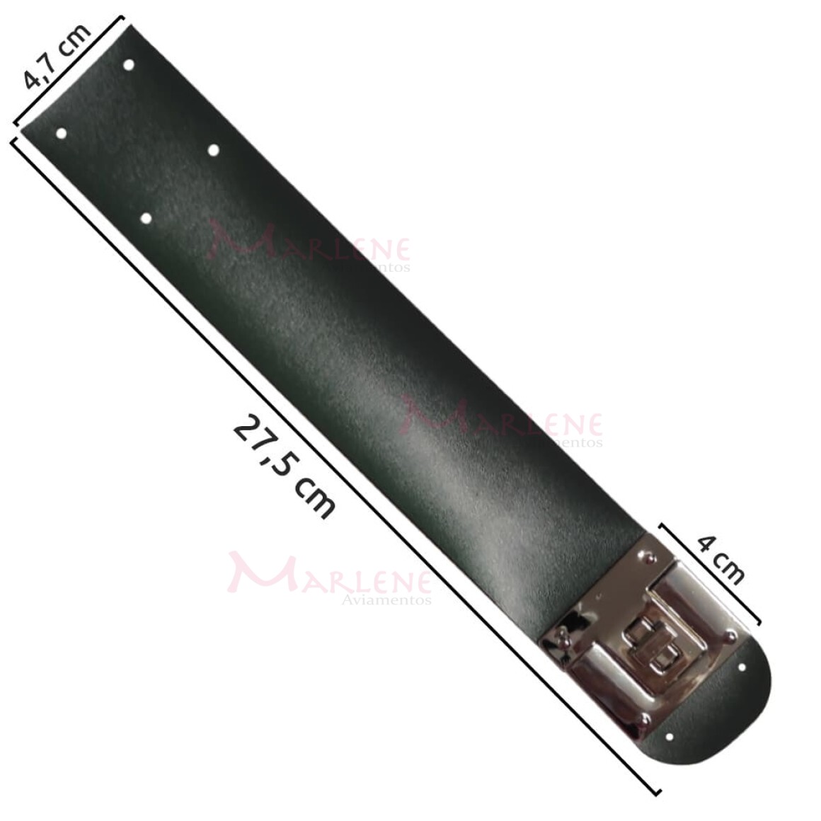 Uso: Fecho em corino usado para bolsas de crochê e tricô, entre outros adereços com fecho. Feito em material sintético e fecho de metal com encaixe giratório. Seu comprimento mais alongado, permite fazer a volta completa pela parte superior da bolsa.