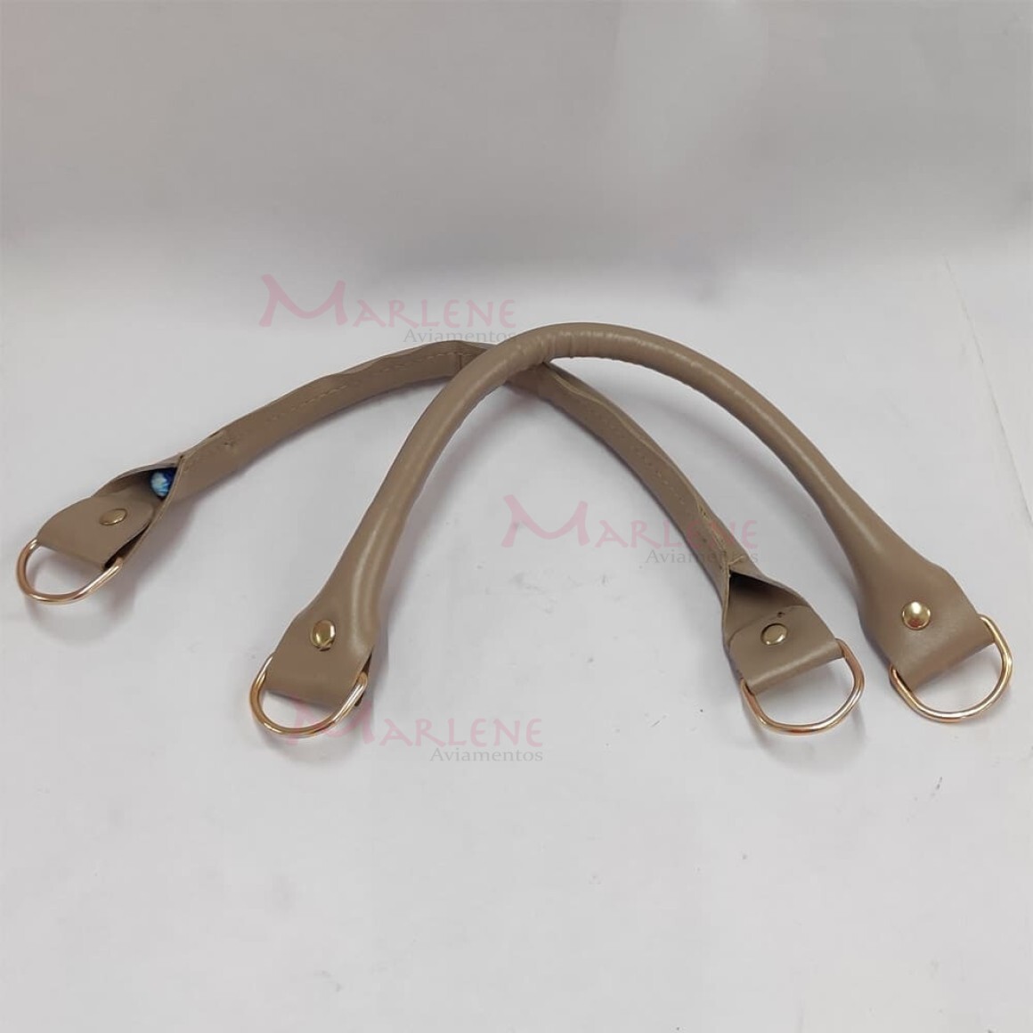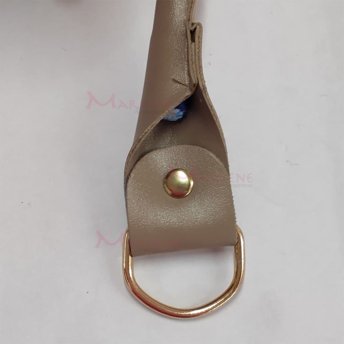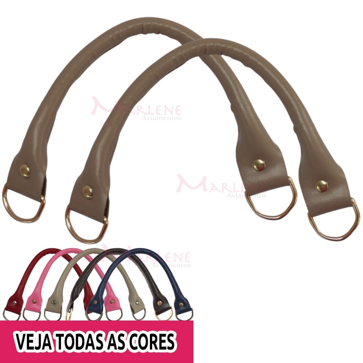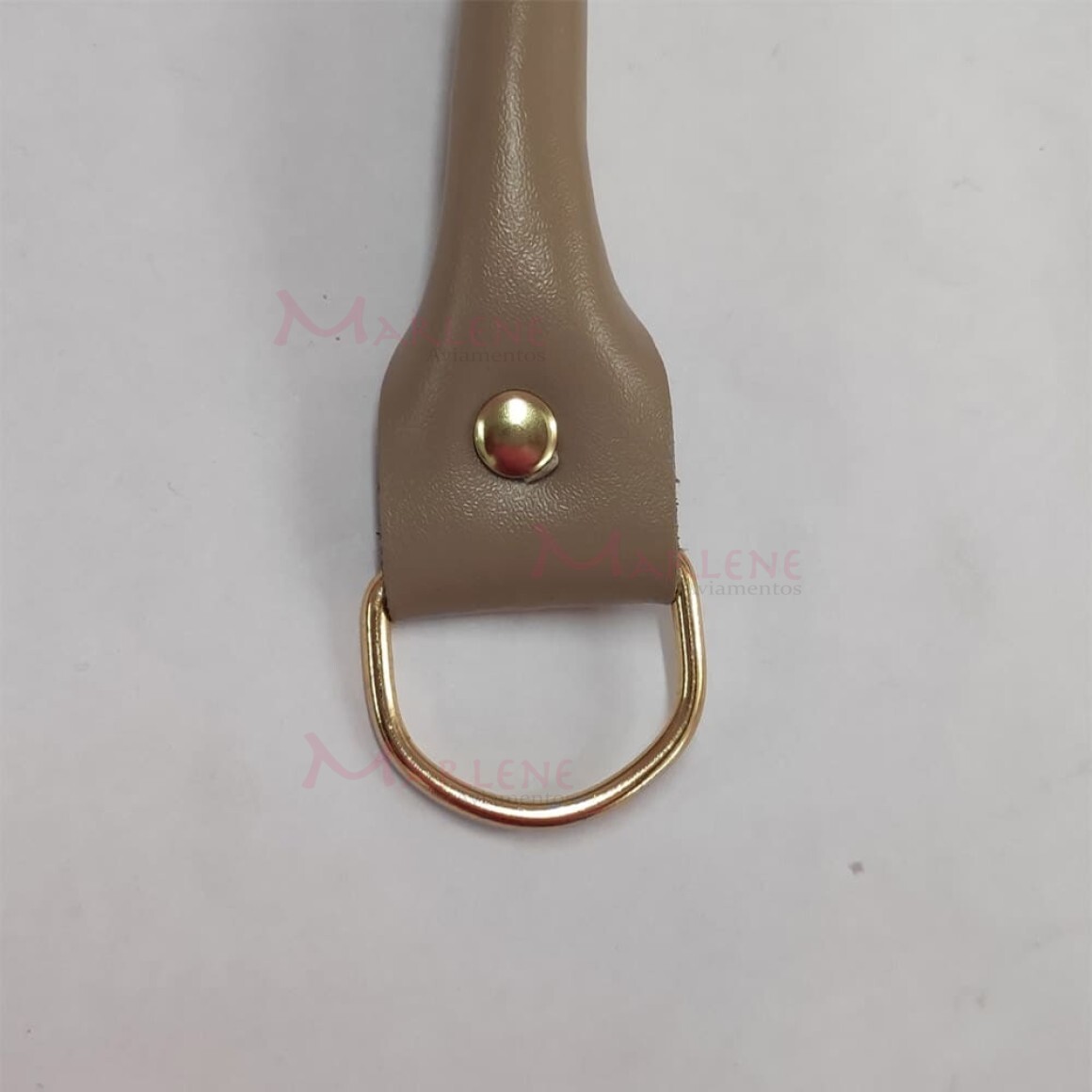 Detalhe: Alça de mão em couro sintética e meia argola com 1 par