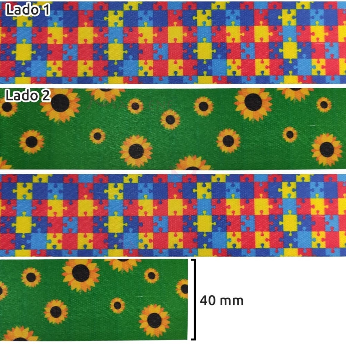 2. Alça dupla face 40mm estampada símbolo autísmo e defieciênais ocultas MWGE5000 por metro