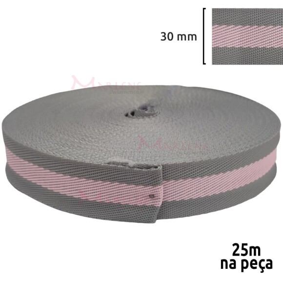 Detalhes: Fita chic 30mm para alça de bolsa com 25m em poliéster Bicolor