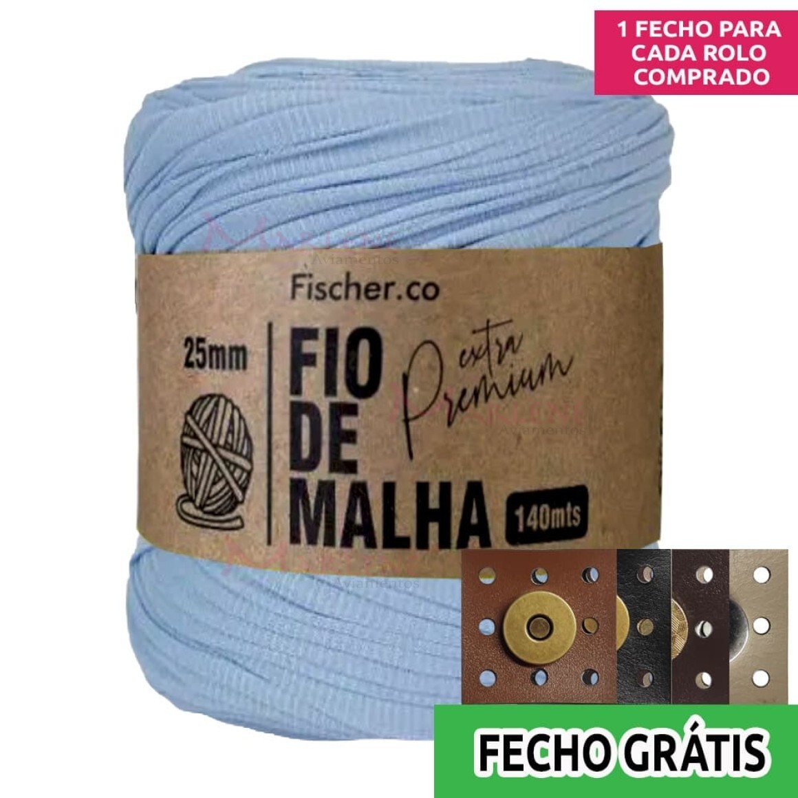 2. Fio de malha extra premium 25mm com 140m Fischer + fecho de corino grátis