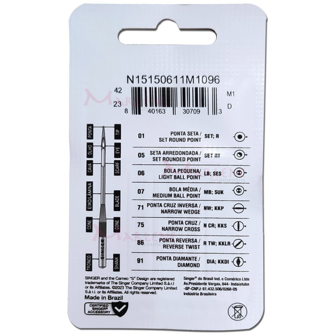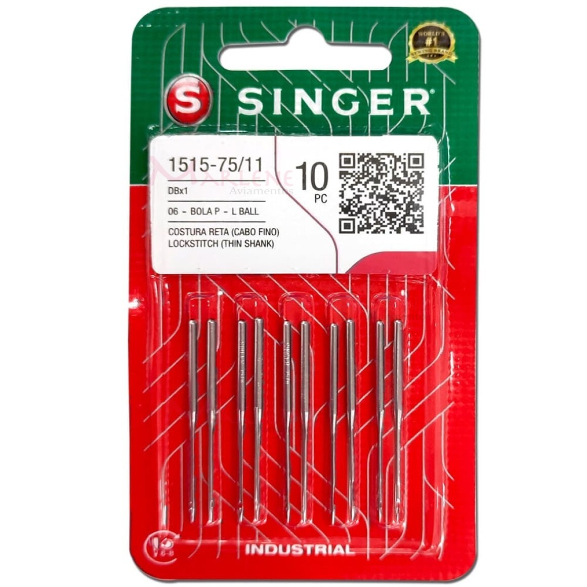 Detalhes: Agulha cabo fino nº11 Singer 1515 para máquina industrial com 10 unidades