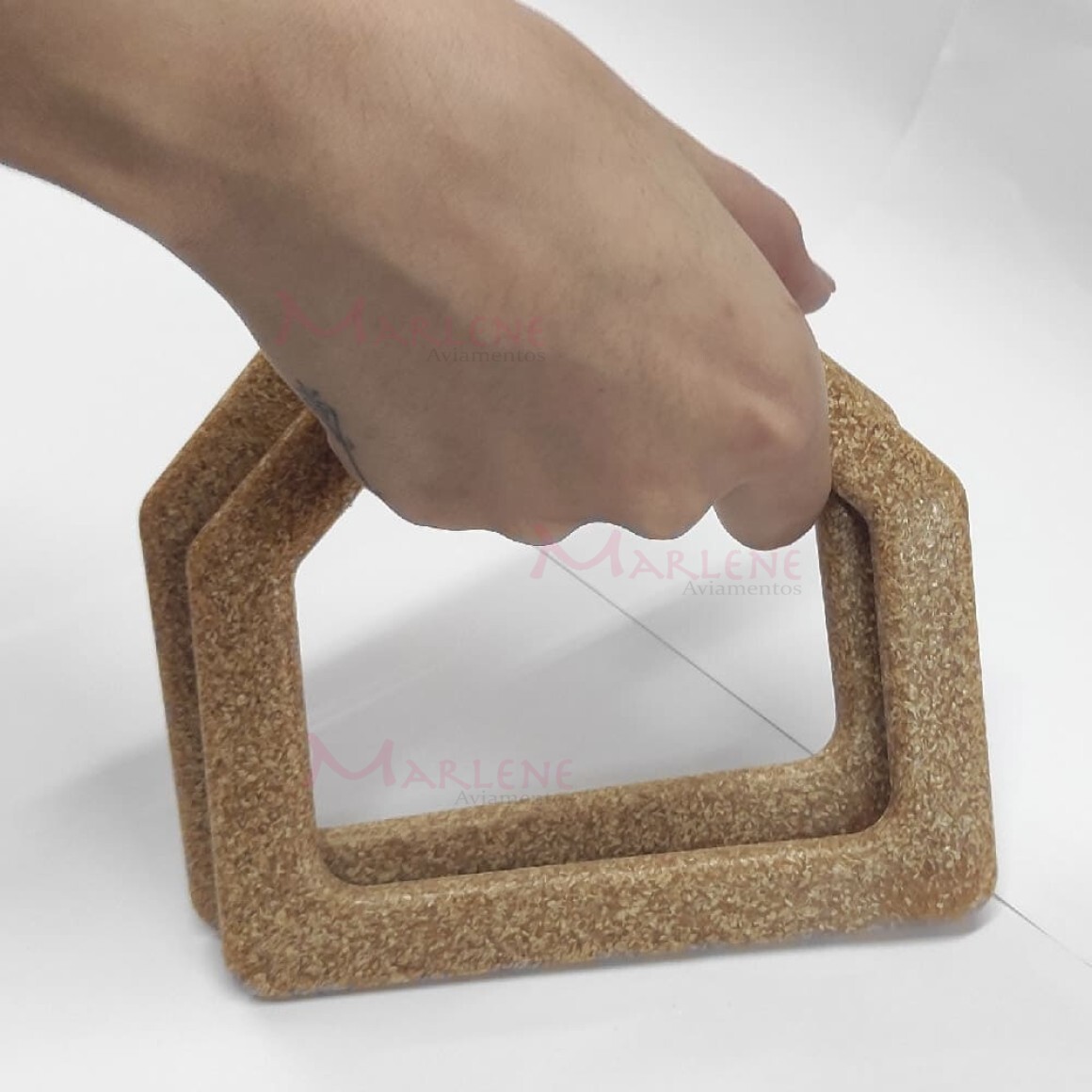 Detalhes: Alça para bolsa meia argola cor madeira 7652 com 1 par (Plástica)
