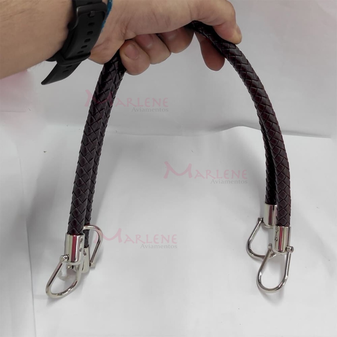 Detalhes: Alça de bolsa trançada corino marrom com porta alça 1122 com 1 unidade
