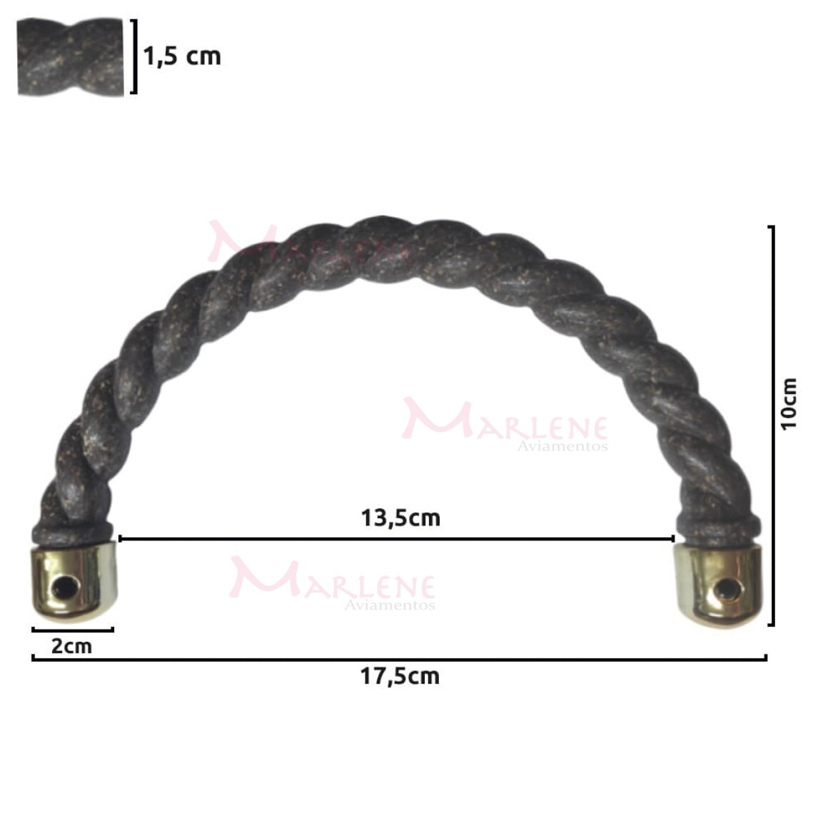 Detalhes: Alça trançada imbuia mesclado com ponteira dourada 7450 com 1 par