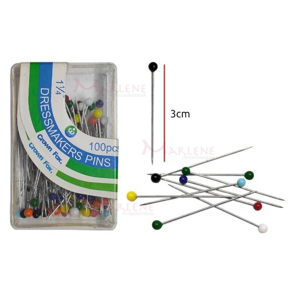 Uso: Podem ser usados em costura em geral, são finos e possuem a vantagem de ao passar a roupa com o ferro quente, a cabeça do alfinete não derreterá como os alfinetes de cabeça plástica.