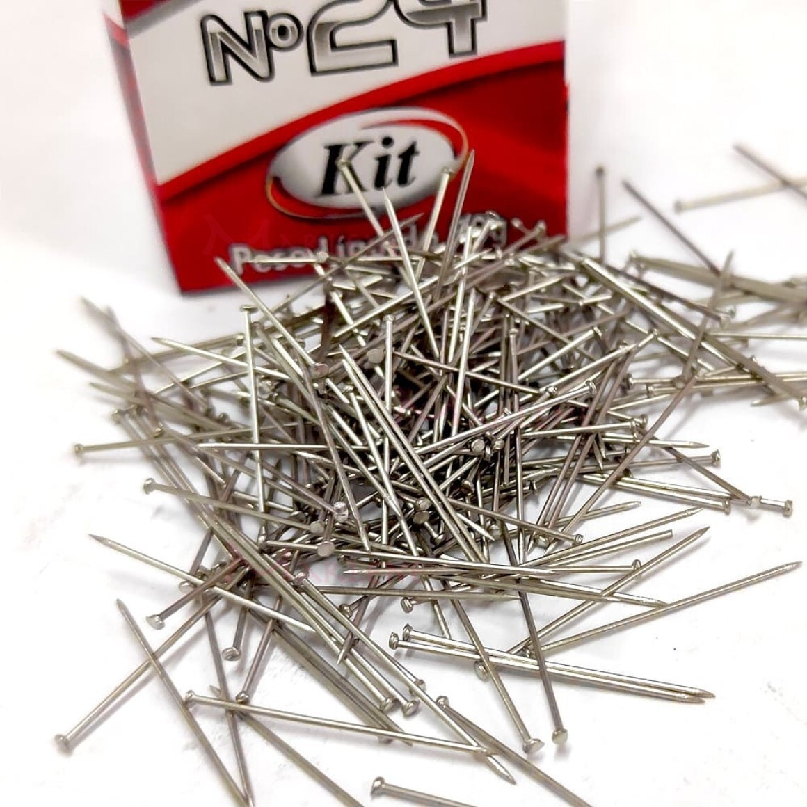 Detalhes: Alfinete de cabeça nº24 níquel com 50g marca Kit 8249C