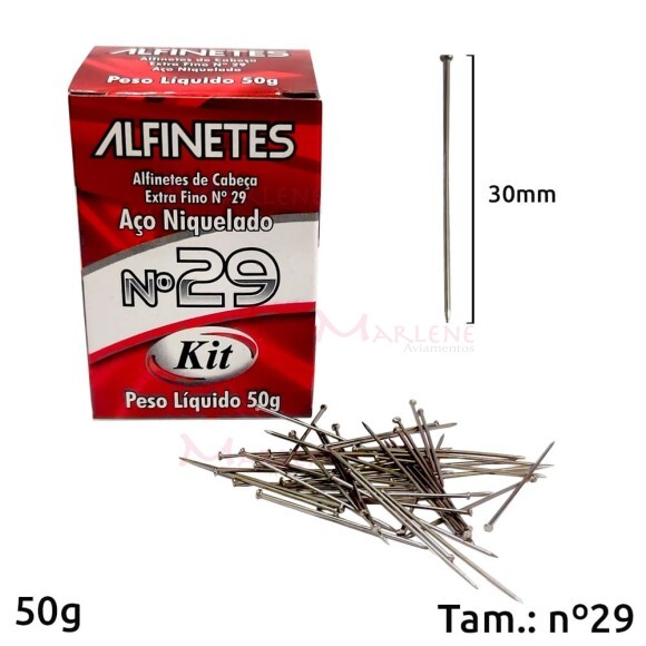 Detalhes: Alfinete de cabeça nº29 níquel com 50g marca Kit 8350M