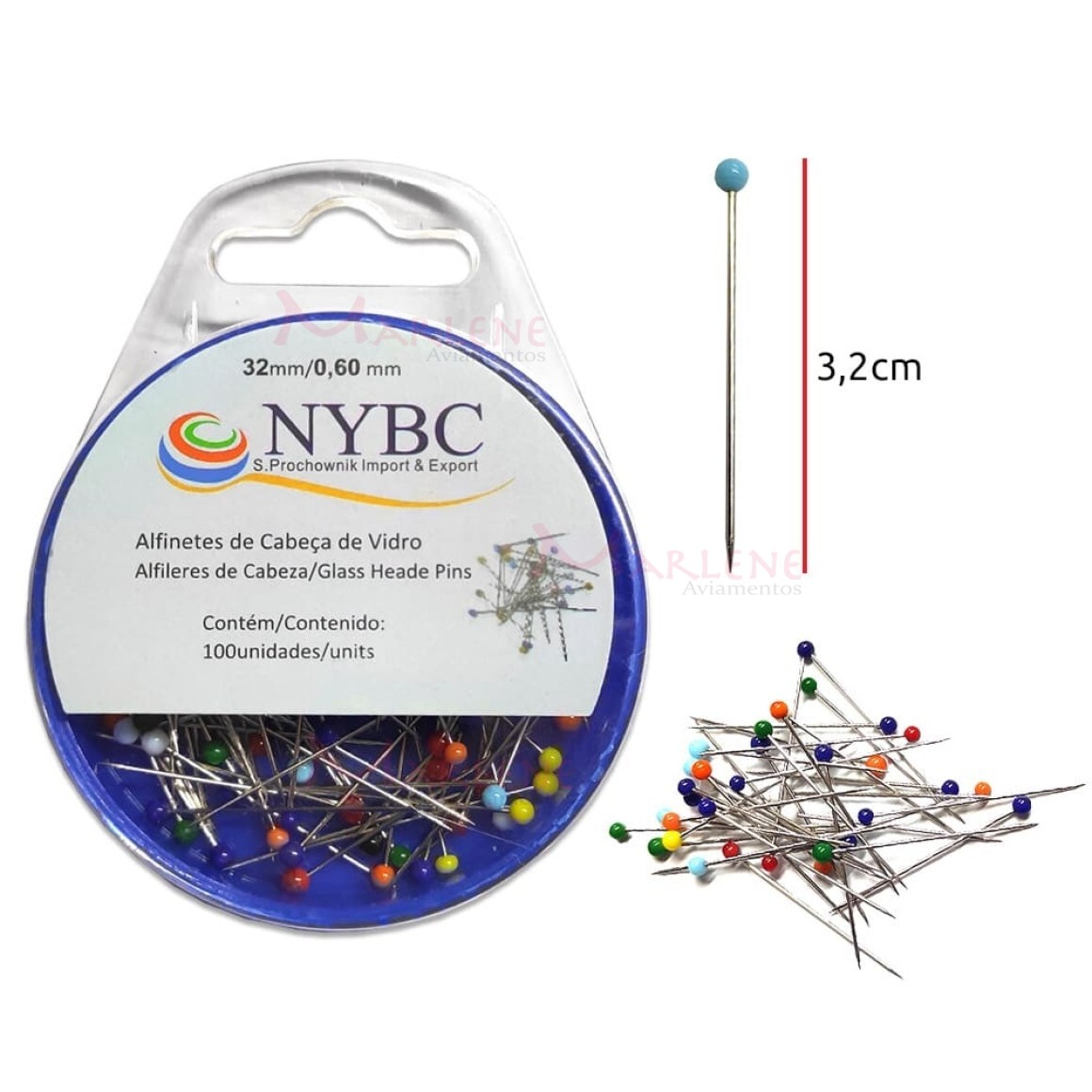Alfinete cabeça de vidro NYBC com 100 unidades