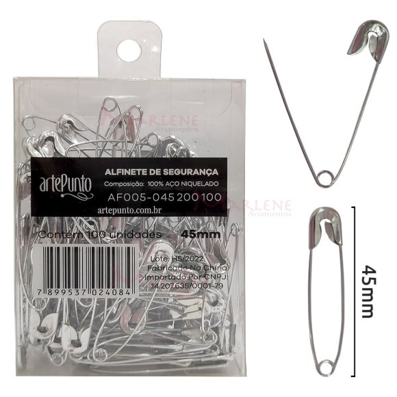 Detalhes: Alfinete de segurança 45mm níquel com 100 unidades Artepunto