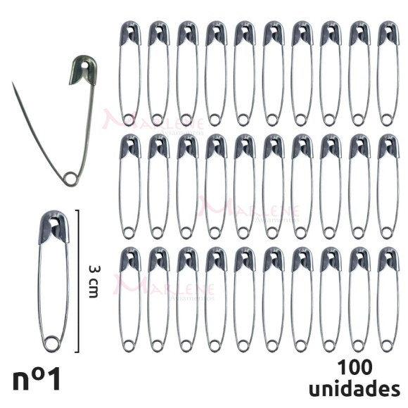 Detalhes: Alfinete de segurança nº1 níquel com 100 unidades