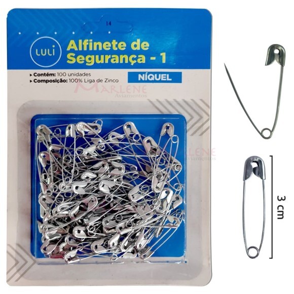 Detalhes: Alfinete de segurança nº1 níquel com 100 unidades Luli