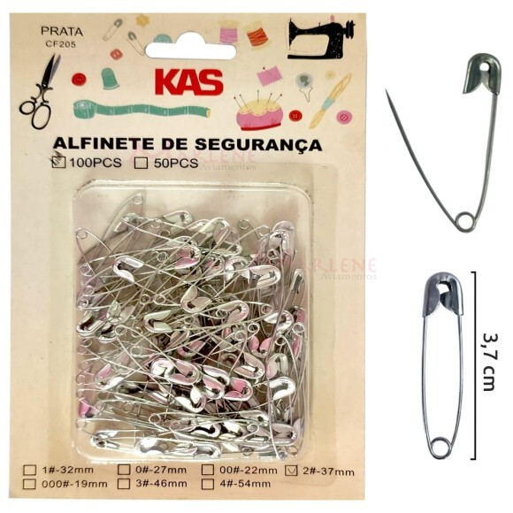 Detalhes: Alfinete de segurança nº2(37mm) níquel com 100 unidades KAS