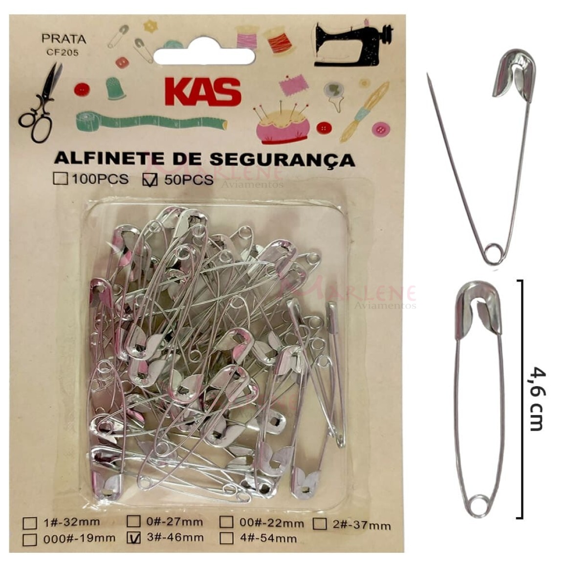 Detalhes: Alfinete de segurança nº3(46mm) níquel com 50 unidades KAS
