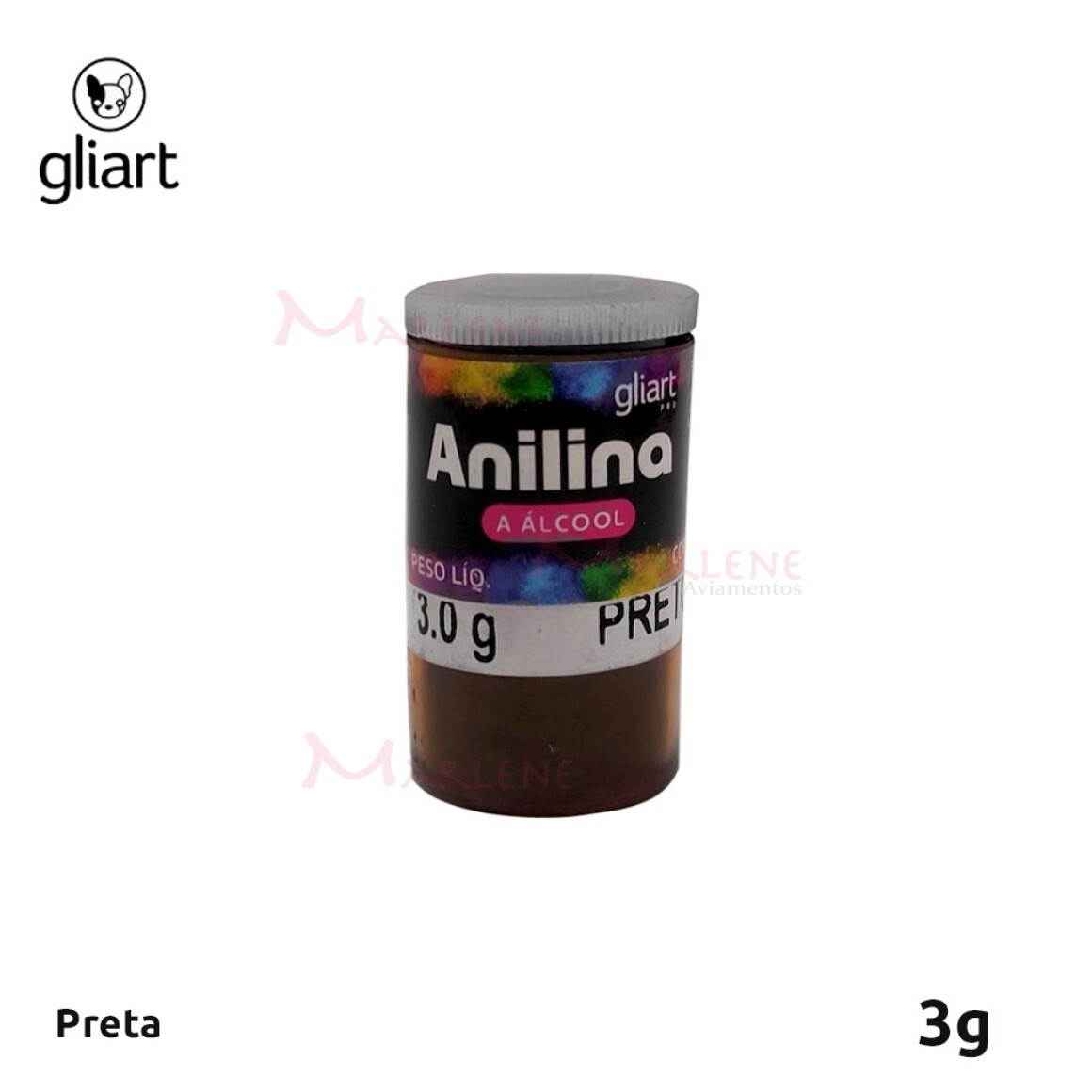 Detalhes: Anilina em pó a álcool preta com 3 g Gliart