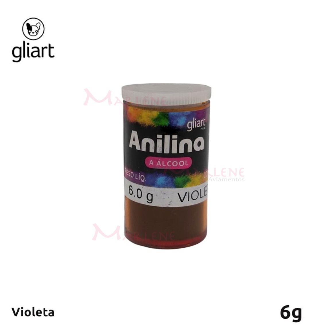 Detalhes: Anilina em pó a álcool violeta com 6 g Gliart