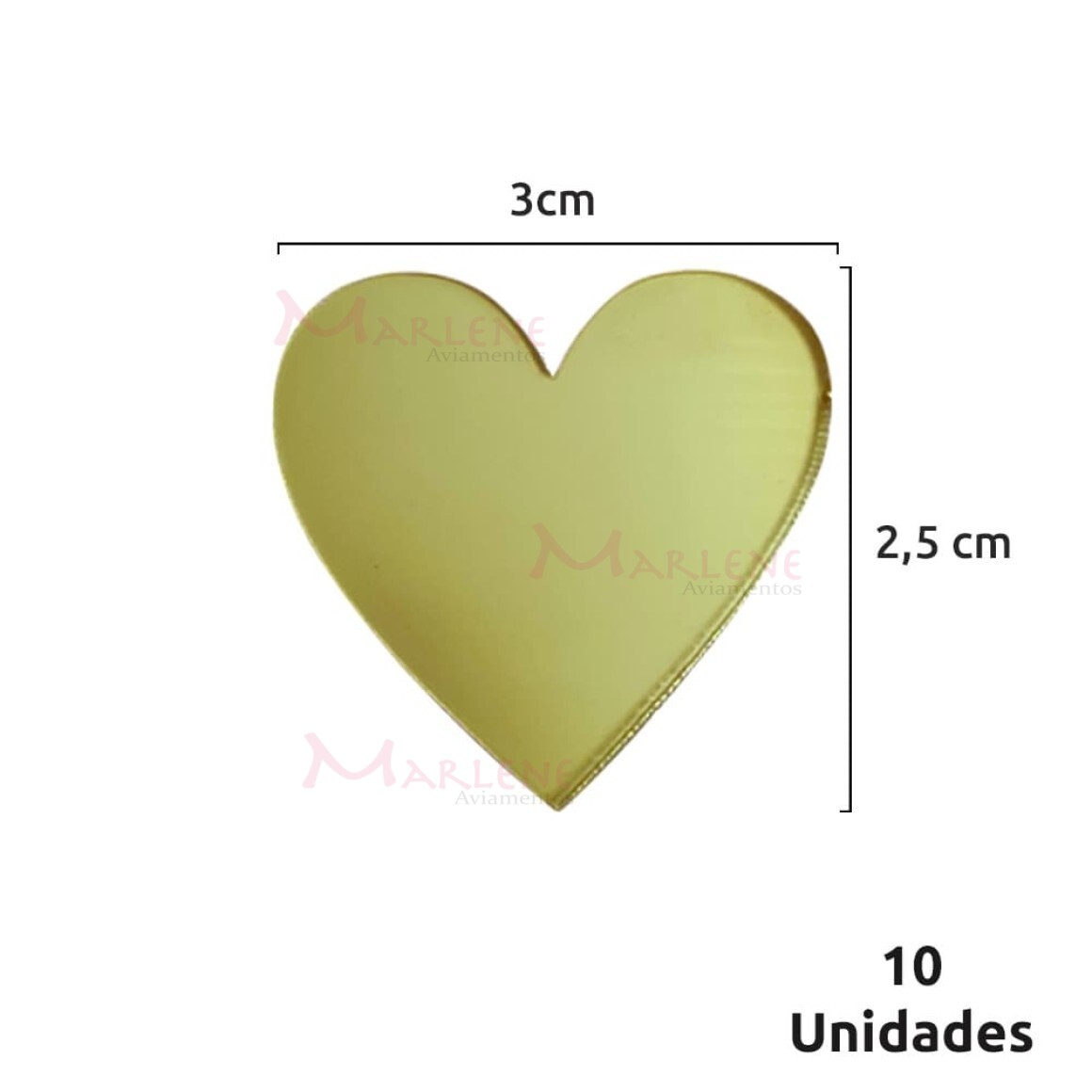 Detalhes: Aplique acrílico espelhado coração com 10 unidades 2881