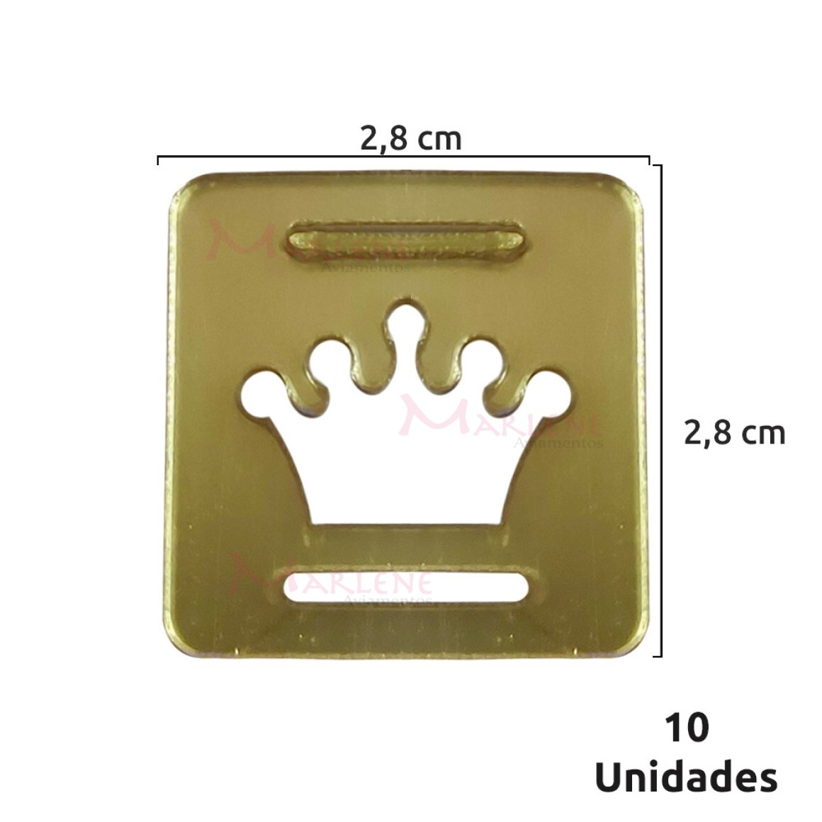 Cor: Ouro (Todos os apliques possuem uma película protetora que deixa a imagem mais foscas, porém, depois de removido o aspecto e de acrílico espelhado nítido)