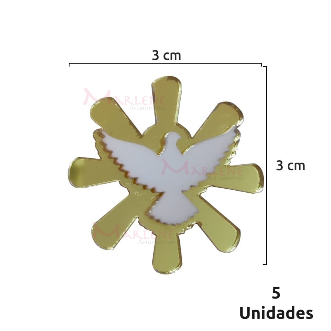 Detalhes: Aplique acrílico espelhado pombo branco com 5 unidades 2833