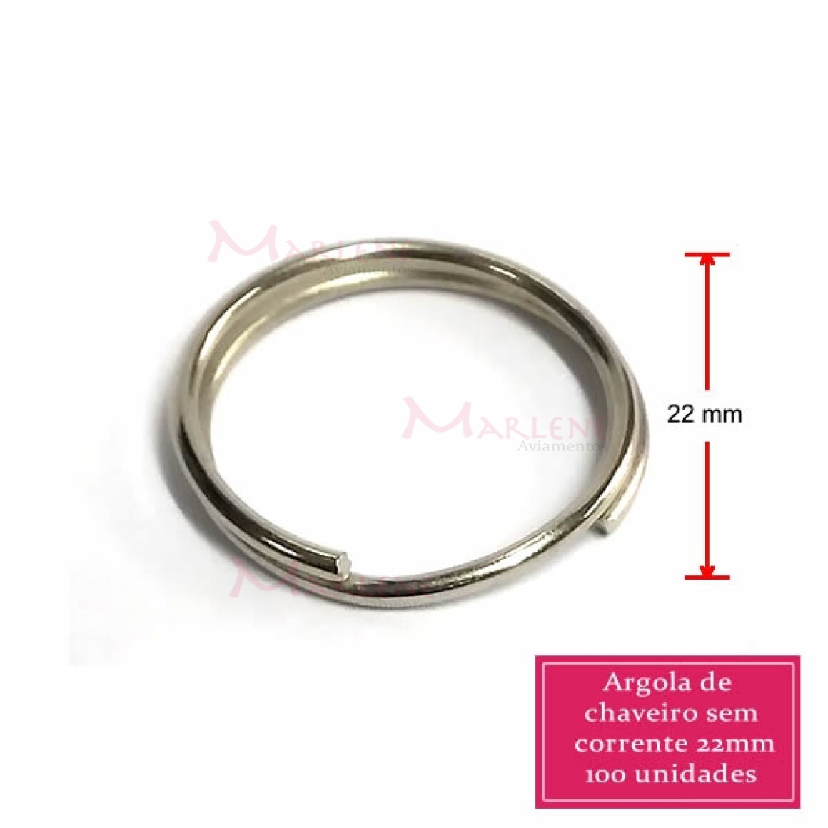 Detalhes: Argola para chaveiro 22mm com 100 unidades sem corrente, níquel.